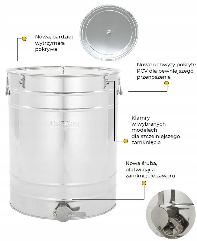 - Відстійник із винятковою довговічністю та стійкістю до пошкоджень і корозії, що робить його ідеальним рішенням для тривалого зберігання меду.