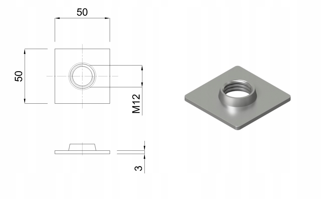 Нержавіюча штекера 50x50x3 inox з ниткою M12