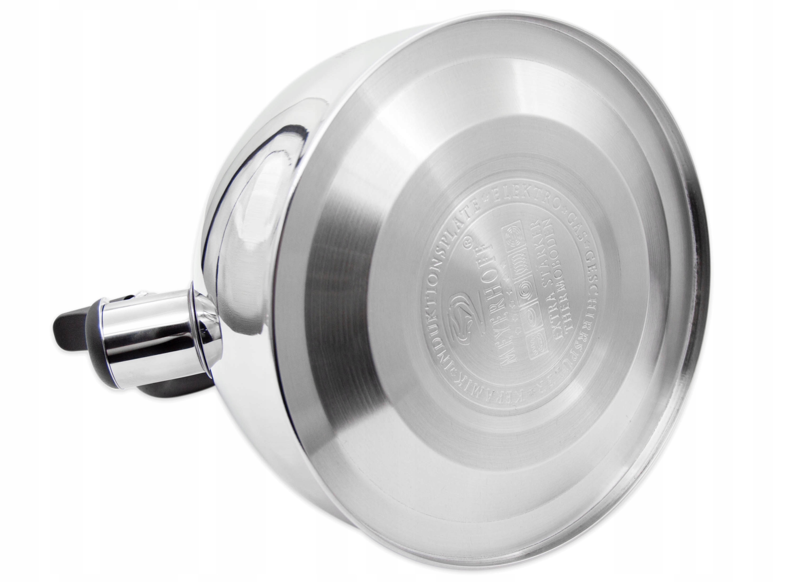 Мейєрхофф чайник виготовлений з високоякісної нержавіючої сталі. Дно чайника забезпечує навіть розподіл тепла, , зберігаючи енергію. Підходить для всіх видів плит, включаючи індукцію . Має зручну не нагрівну ручку та свист, що повідомляє про кипіння води.
