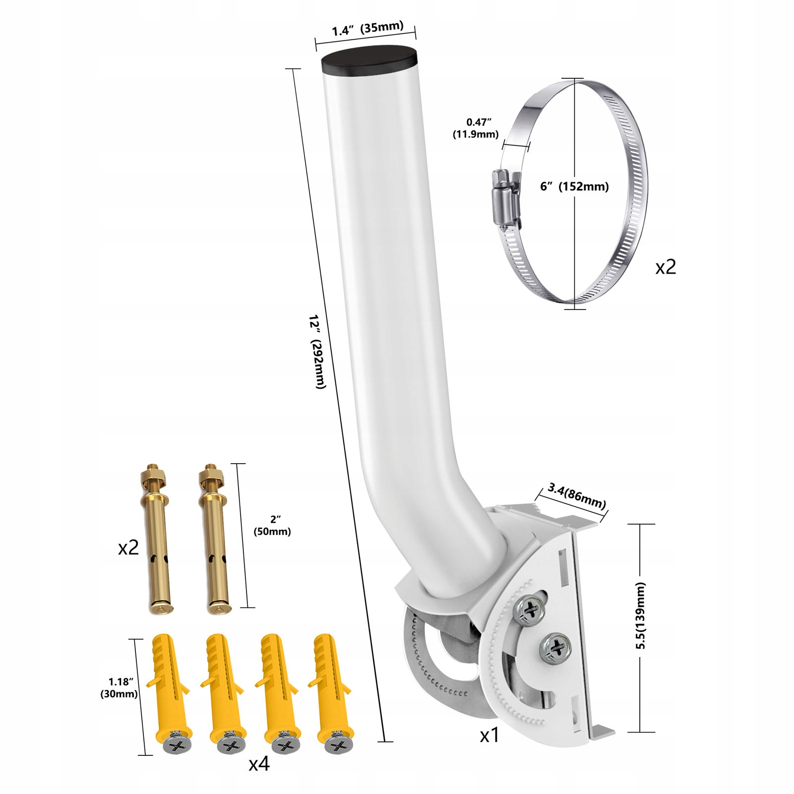 5. Повний комплект аксесуарів: містить розширювальні гвинти для встановлення на цегляній стіні, чотири гвинти для кріплення на дерев’яній стіні та два американських хомути для шлангів для кріплення монтажного кронштейна J до опори антени, що забезпечує всі необхідні компоненти для легкого встановлення.