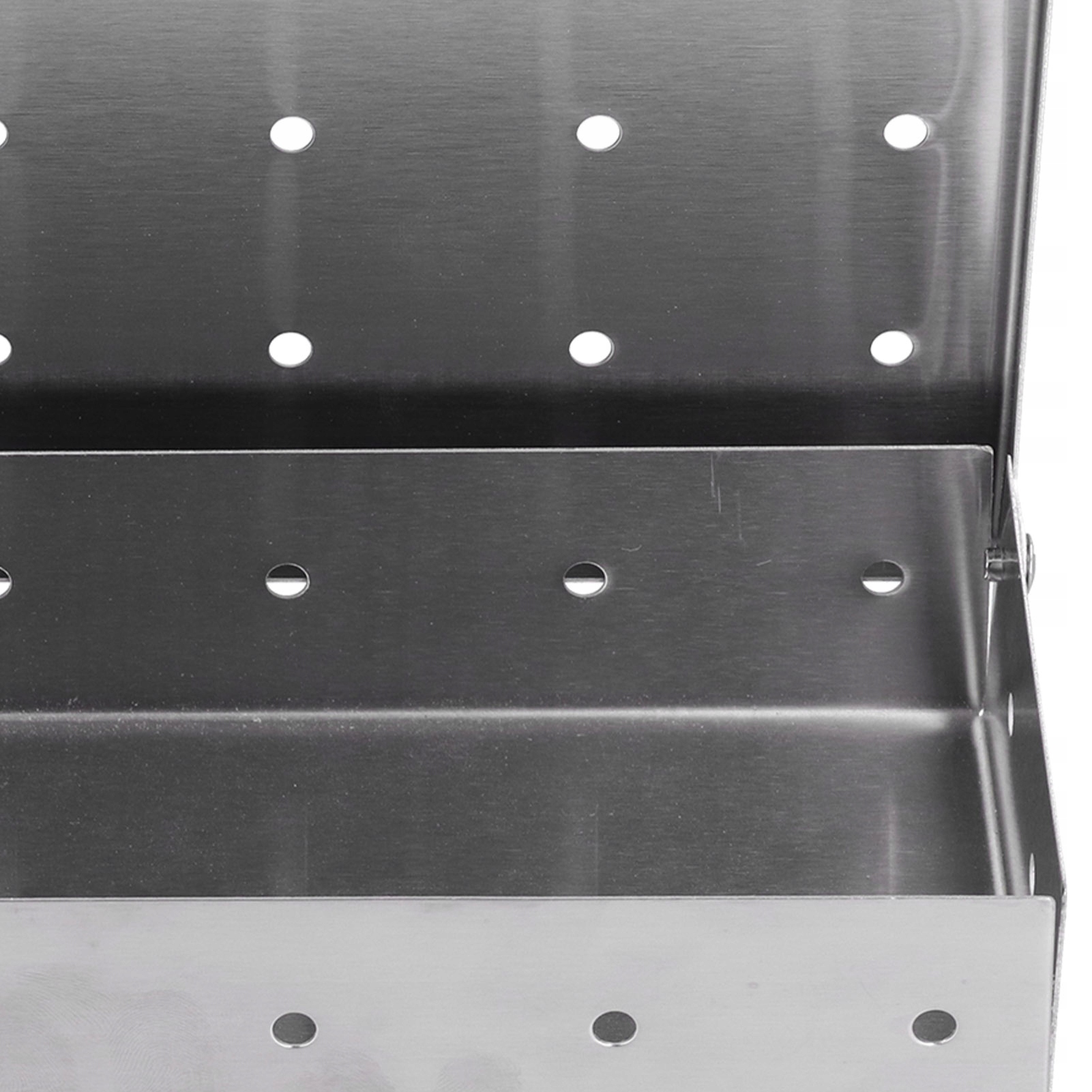 1. Верх і дно розроблені з вентиляційними отворами, які всмоктують повітря в рамки, щоб запобігти пожежі та створити більш рівномірний і щільніший гриль -дим. Простий у використанні, все, що вам потрібно зробити, - це додати чіпси в коробку для куріння і покласти коробку безпосередньо в гриль або полум'я, щоб використовувати його. Сумісність, безпечна гуманізована конструкція, не шкода рук, портативна і довговічна, сумісна з більшістю видів вуглецевих або газових грилів. Грильська коробка виготовлена з нержавіючої сталі, не іржаво, простий у чистому, товстій, непросто для деформації та довговічної. Використовуйте їжу з задимленим смаком, дуже придатним для вуглецевих або газових грилів, стійкі до високої температури. Газ на грилі Smokehole з нержавіючої сталі