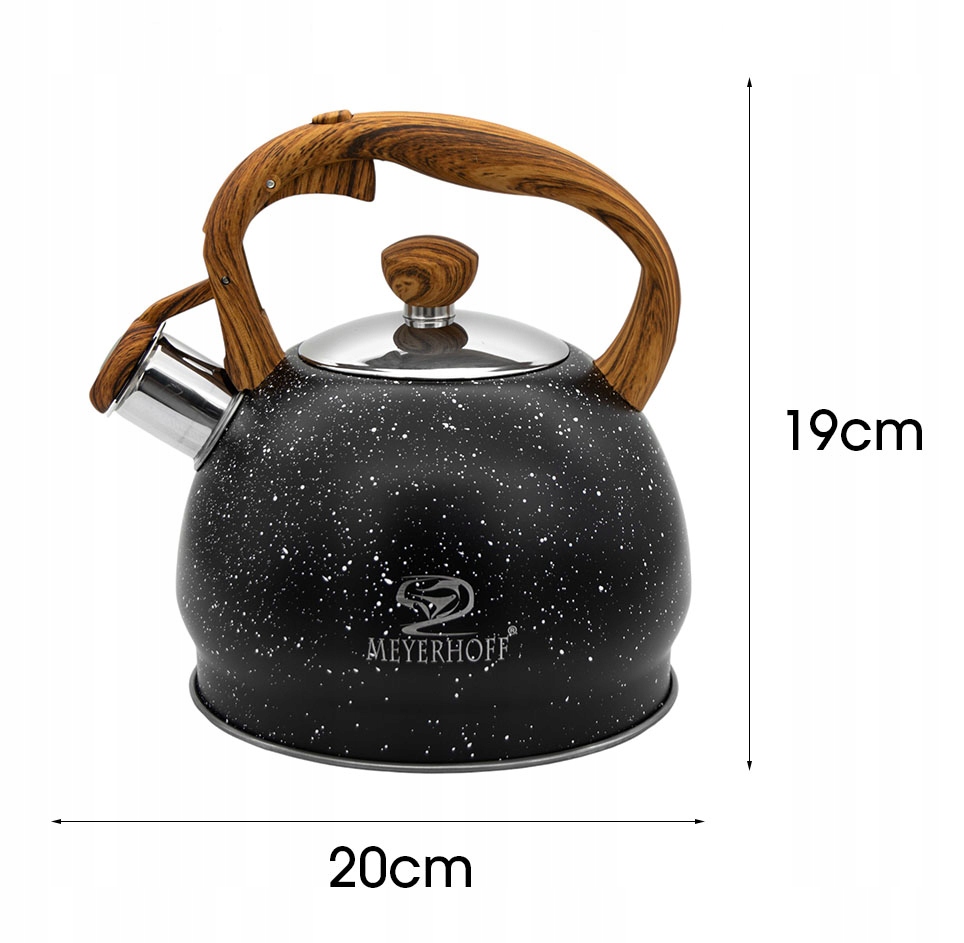 Мейєрхофф чайник виготовлений з високоякісної нержавіючої сталі. Дно чайника забезпечує навіть розподіл тепла, , зберігаючи енергію. Підходить для всіх видів плит, включаючи індукцію . Має зручну не підігріваючу ручку та свист, що повідомляє про кипіння води.