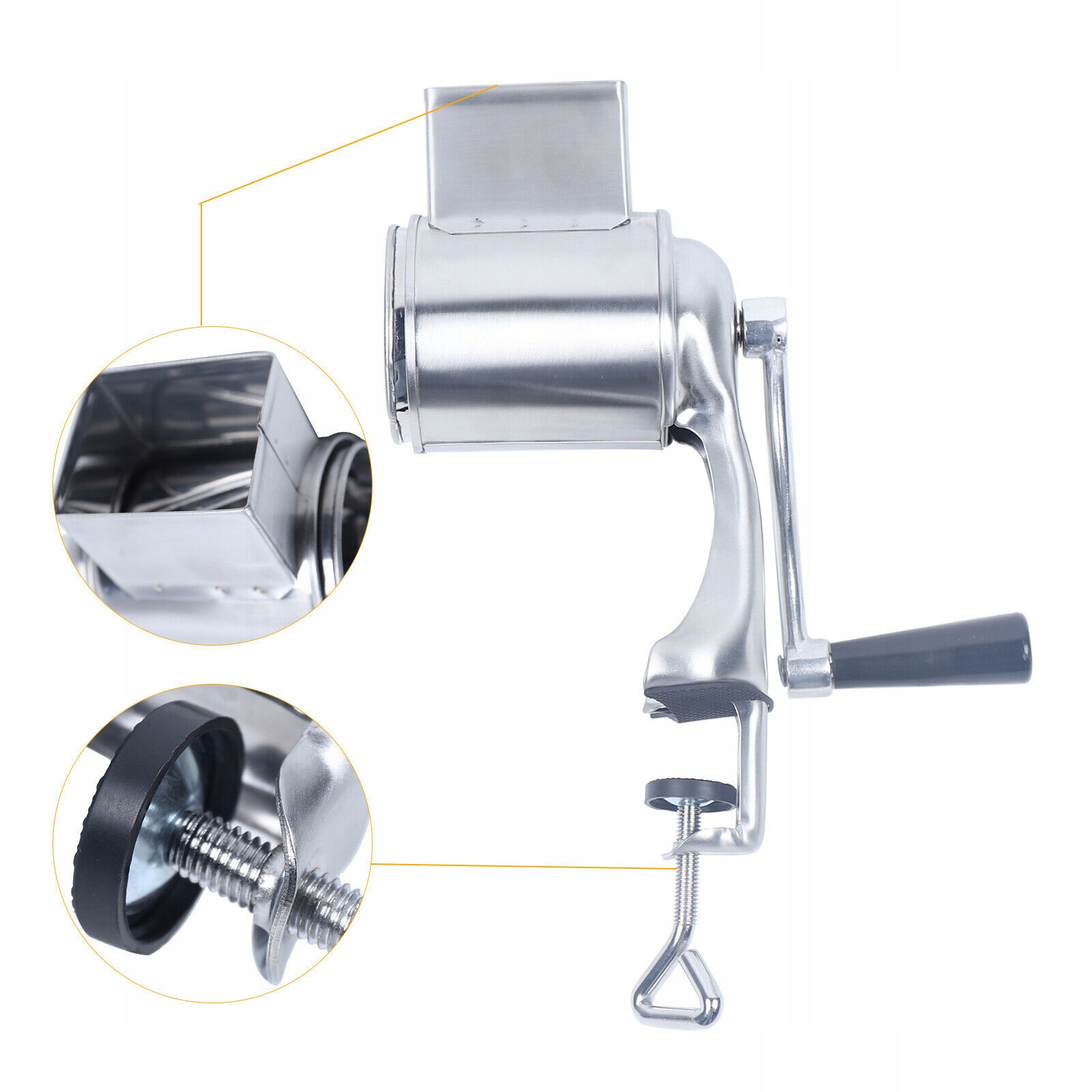 - Тарка виготовлена з високоякісної сталі. Зручний штовхач захистить ваші руки, витерте навіть невеликі шматочки овочів. Овочевий мультиплеєр працює за принципом шліфувальної машини.