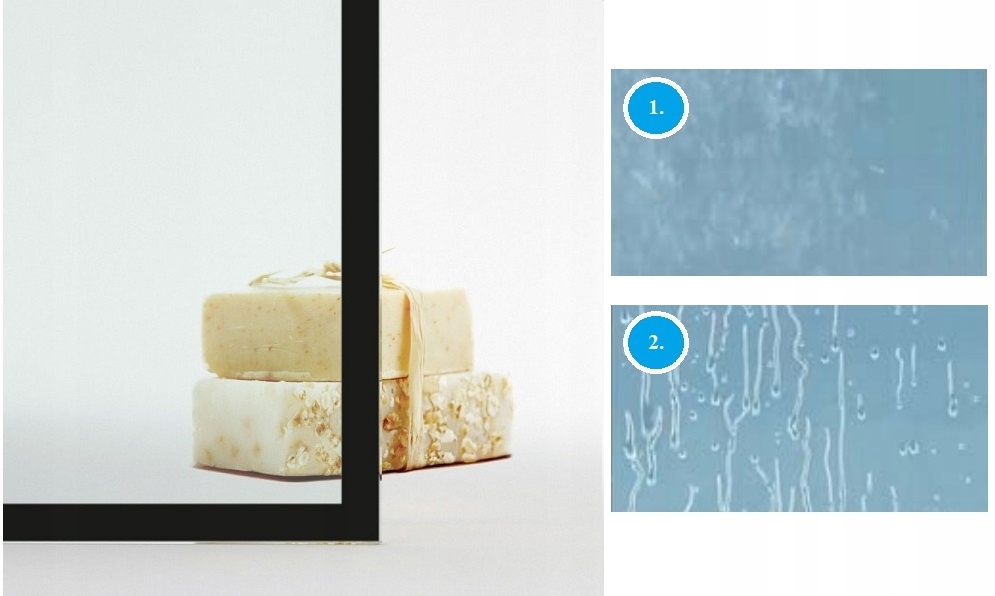 Завдяки своїм гідрофобним властивостям краплі води не залишаються на скляній поверхні, вони просто стікають, не залишаючи слідів.