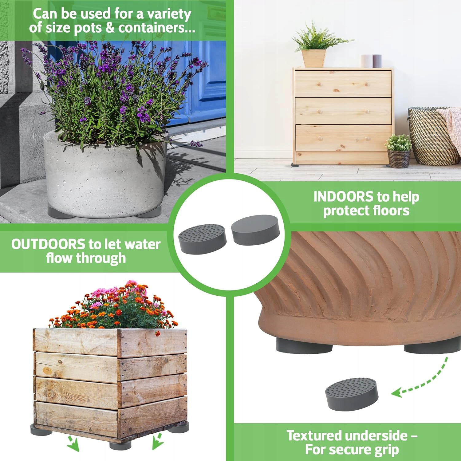 ДОДАТКОВИЙ ДОГЛЯД: наші ніжки для рослин забезпечують потрібну висоту, що полегшує дренаж води, запобігаючи утворенню плям і пошкодженню плит, терас або плитки для підлоги.