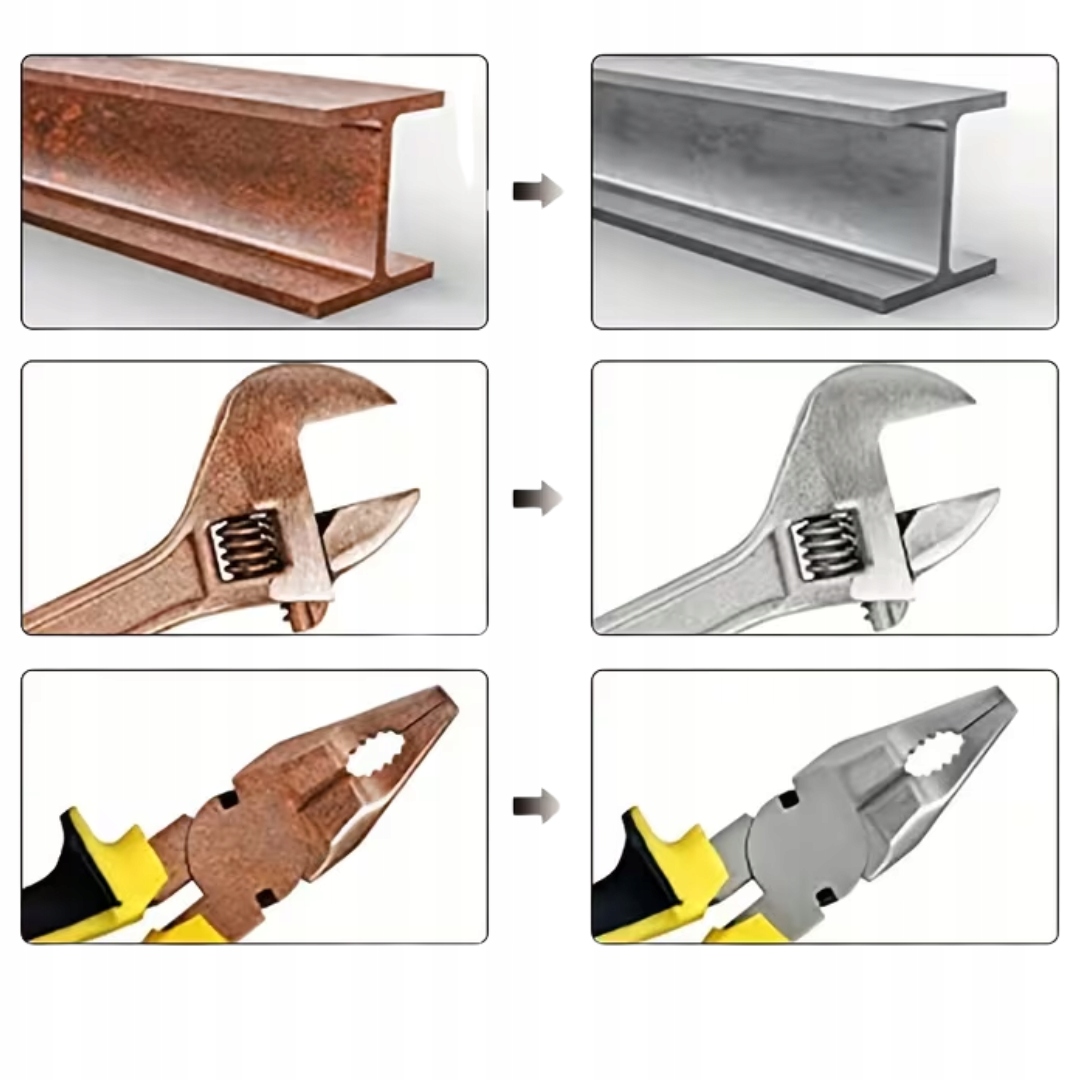 Завдяки цьому він чудово справляється з іржею, накипом, старими лакофарбовими покриттями та залишками клею.