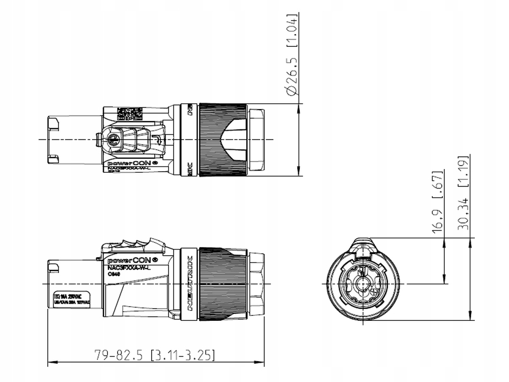 POWERCON - Роз'єм живлення мережі NEUTRIK. Блок-роз'єм (3-провідний - однофазний) для монтажу кабелю з функцією розриву в поєднанні зі спеціальними розетками POWERCON. Замінює роз’єм: NAC3FCA.