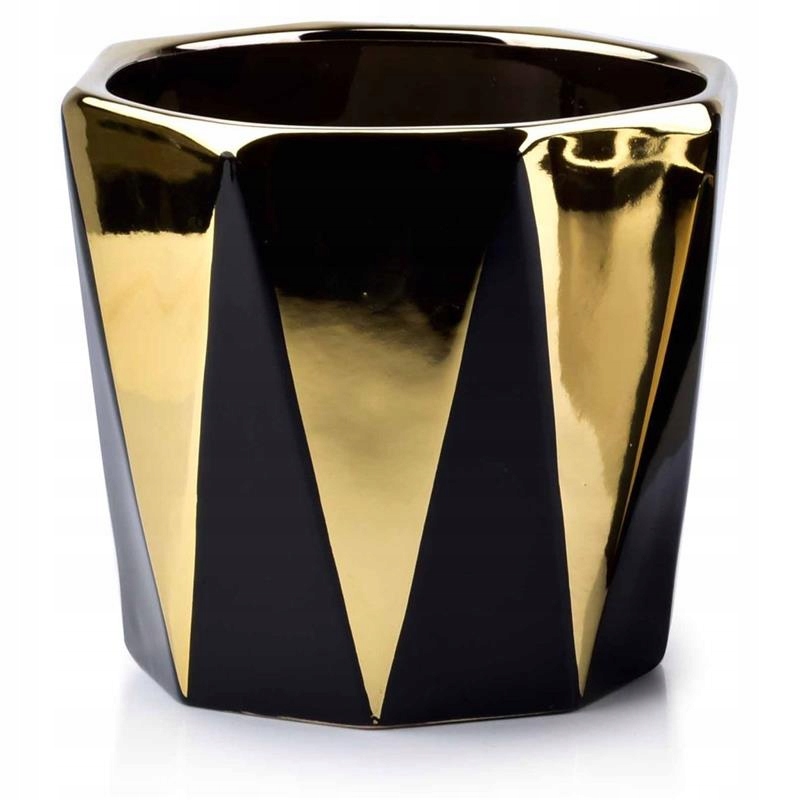 Керамічний квітковий горщик золотого та чорного кольорів цікавої форми. Він ідеально підходить як для демонстрації квітів, так і для прикраси гламурних інтер’єрів. Також підходить для зовнішнього використання в саду або на терасі. Чохол, розміщений на видному місці, додасть елегантності будь-якій кімнаті та стане неповторною прикрасою.