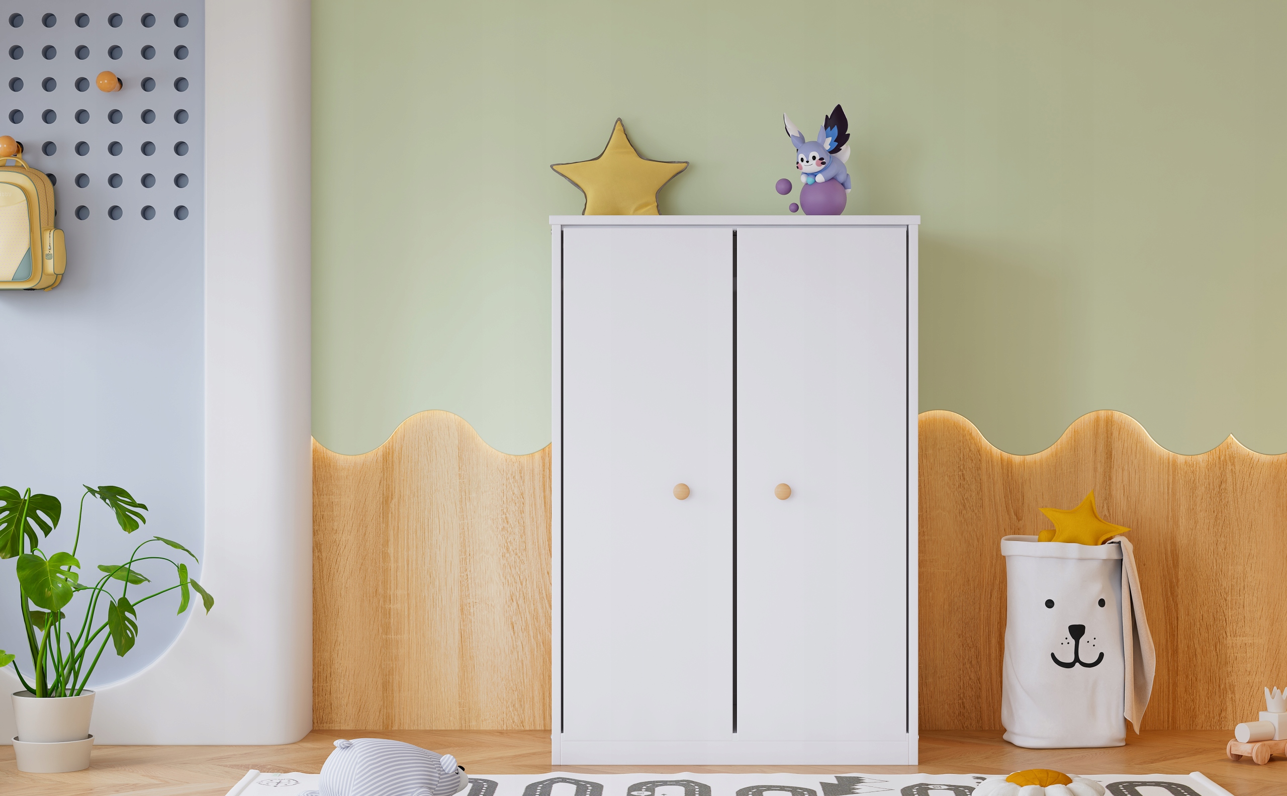 - Компактний розмір: гардероб невеликий і ідеально підходить для спалень, віталень або дитячих кімнат, де простір обмежений.