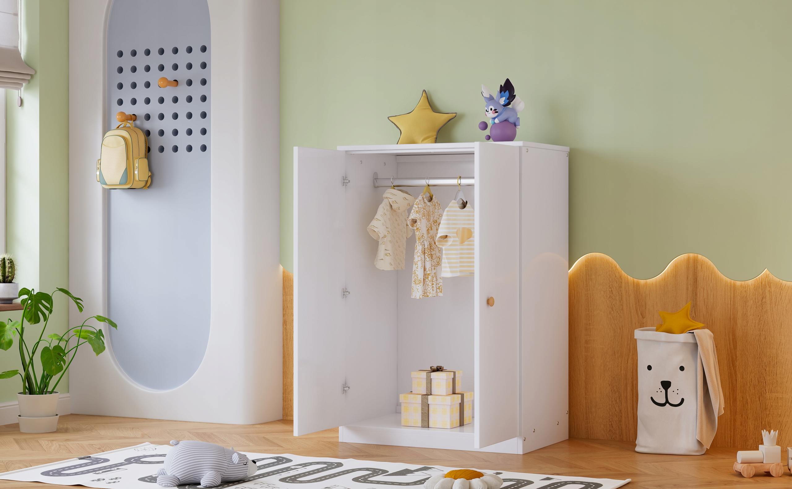Невеликий гардероб з палицею, гардеробом на 2 двері, спальні, вітальні, дитячого гардеробу, МДФ, білого