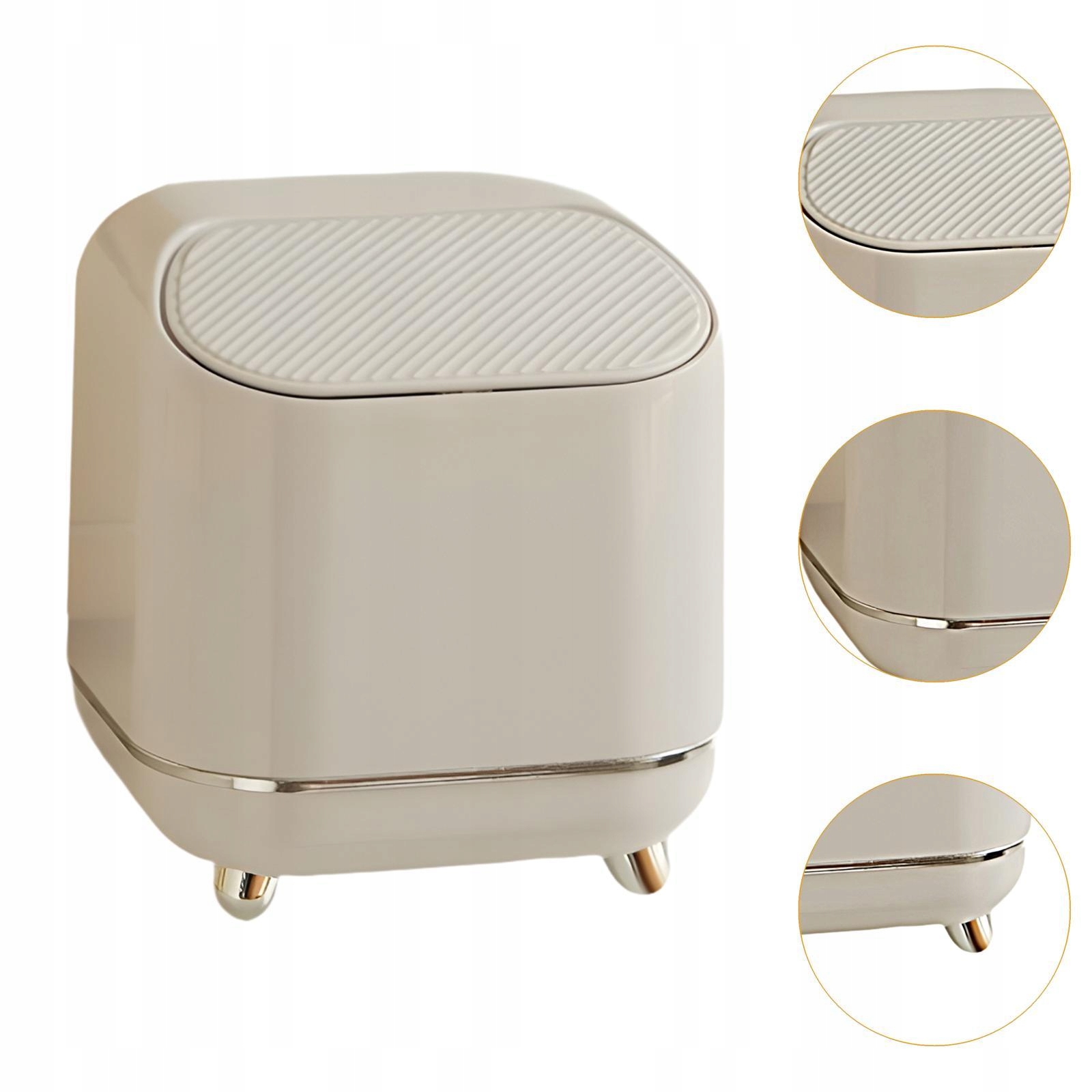 Невелике настільне відро для сміття з кришкою. Сучасний смітник бежевого кольору