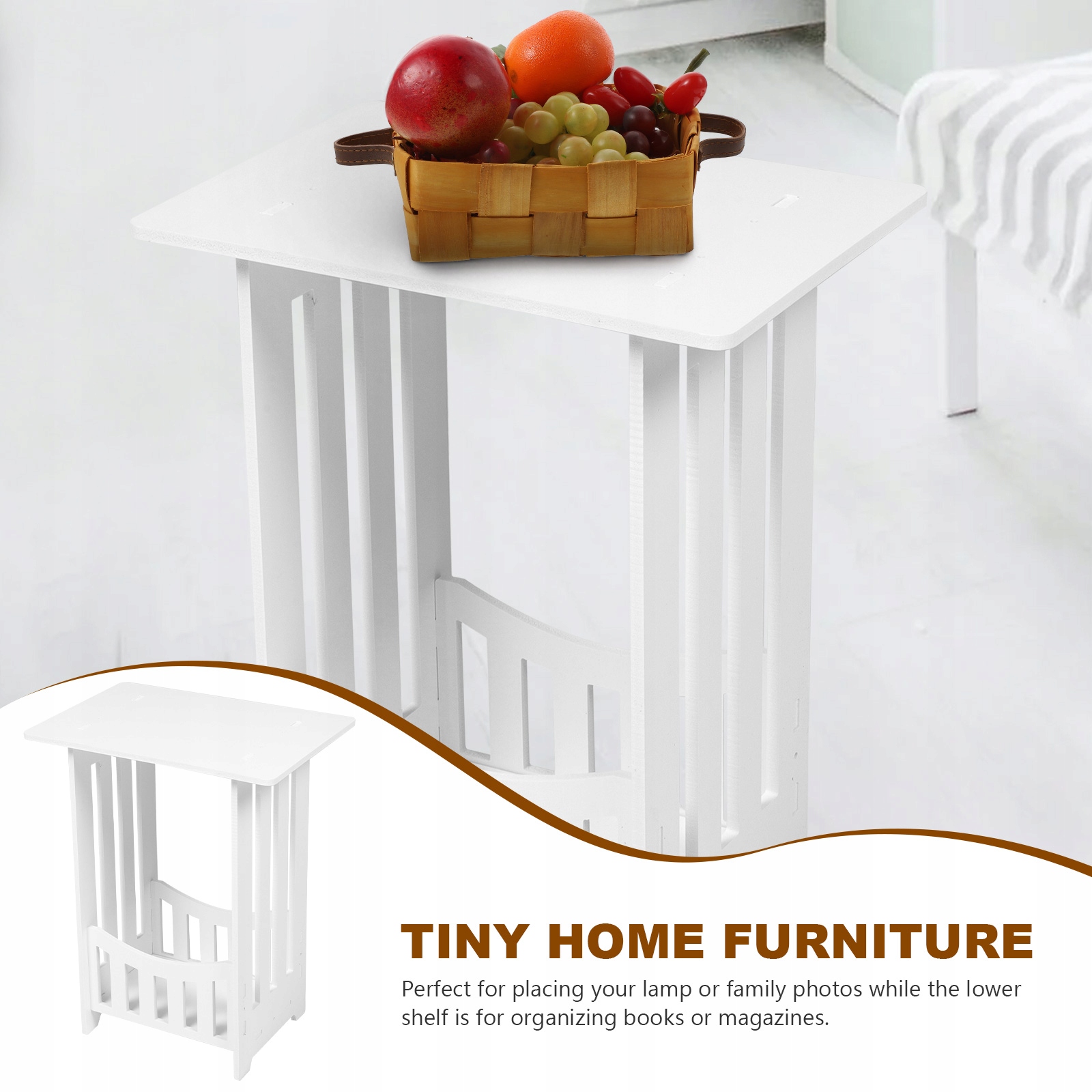 ✅Ідеально підходить для розміщення лампи або сімейних фотографій, а нижня полиця призначена для впорядкування книг або журналів.