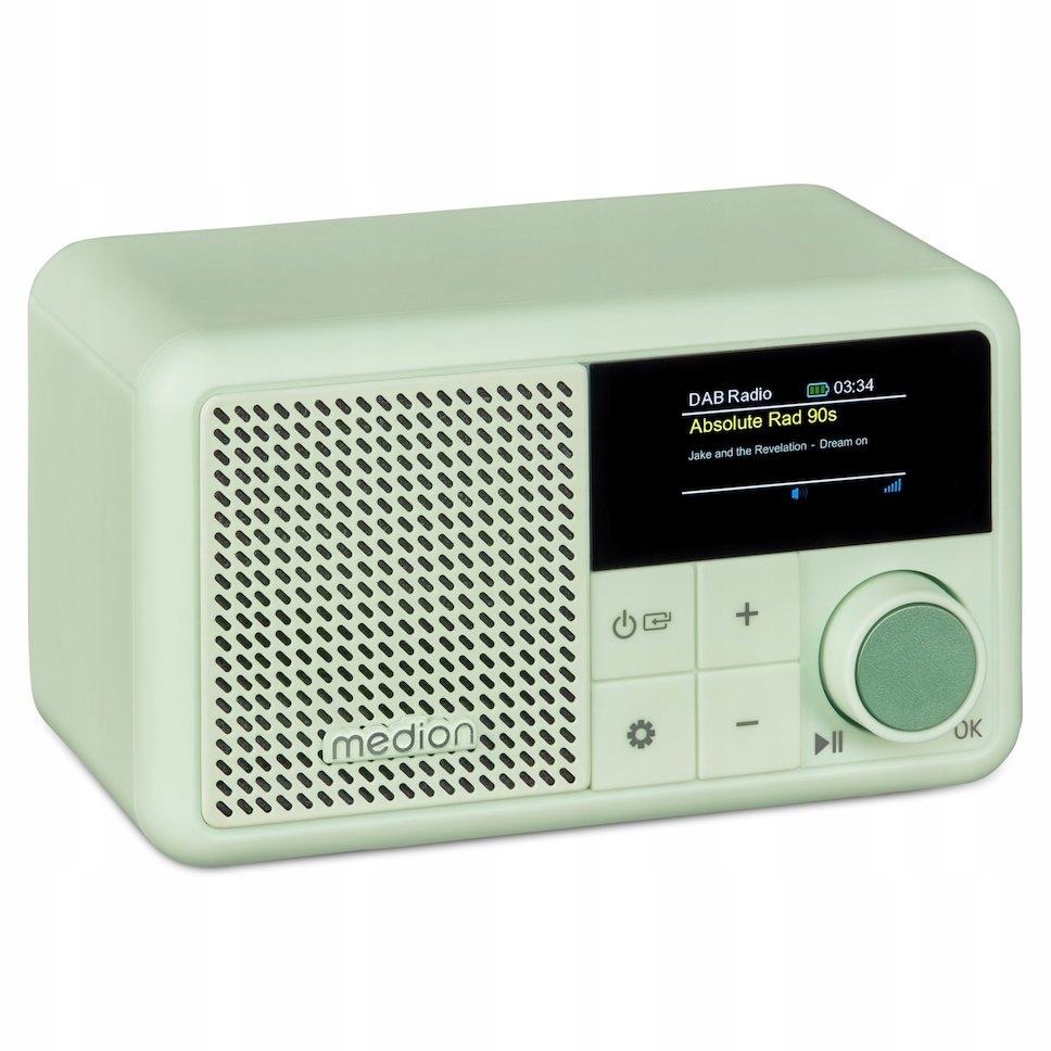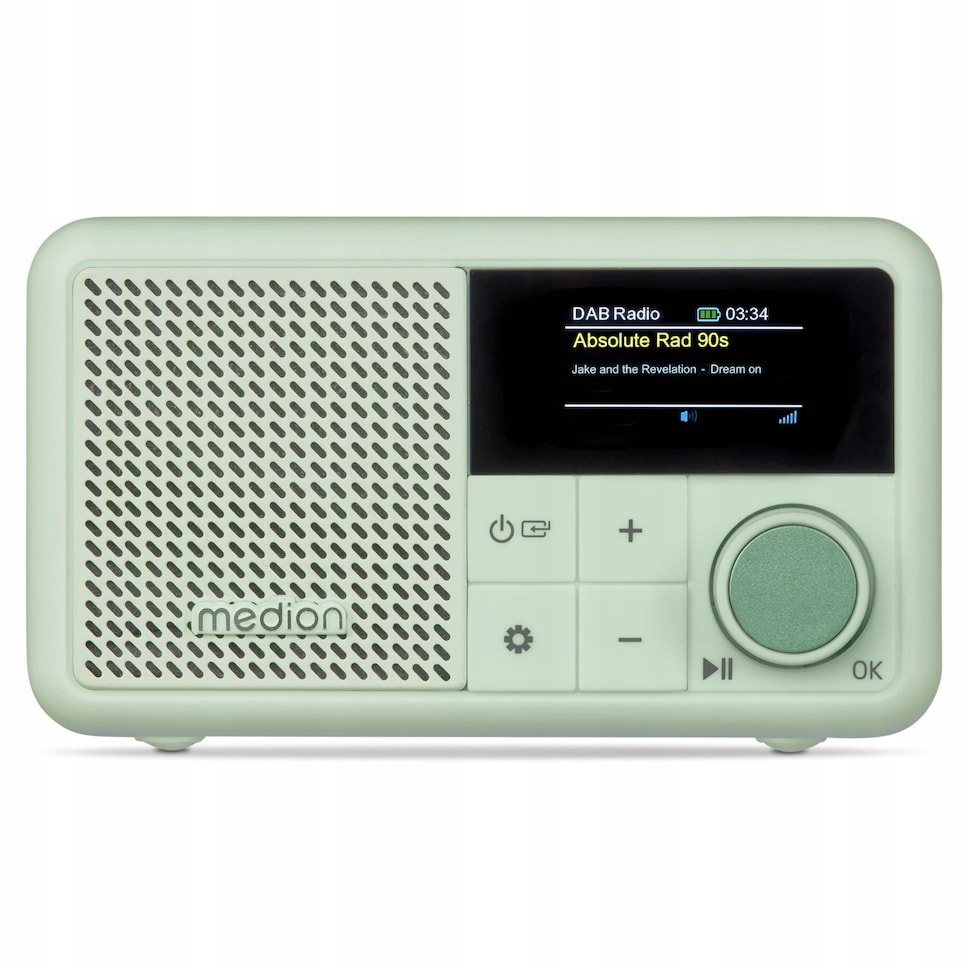 Радіо Медіон S66822 DAB+ полегшить ваше повсякденне життя! Ви можете вибрати між DAB+ та FM - просто збережіть улюблені станції та насолоджуйтесь широким спектром програм. Якщо ви віддаєте перевагу слухати власний список відтворення, швидко підключіть смартфон або планшет через Bluetooth. 1.4 -дюймовий колір кольору означає, що ви ніколи не втратите контроль над тим, що відбувається. Завдяки дуже компактному дизайну радіо ідеально вписується в будь -який стіл і навіть на полиці. Завдяки захисту від бризки, IPX1 ідеально підходить для кухні, ванної кімнати чи подорожей. T AM, завдяки побудованому акумулятору з робочим часом до 6,5 годин, не буде вивантажено так швидко, , що робить їх ідеальним супутником - будь то сніданок, чи в дорозі.