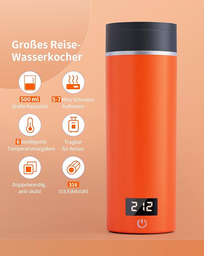 Невеликий електричний чайник Airmsen Помаранчевий 500 мл 6 Налаштування температури