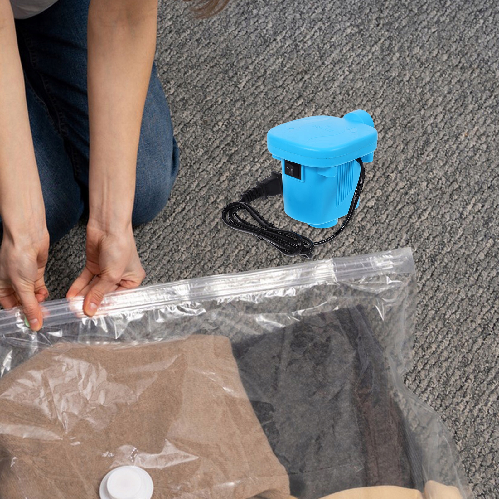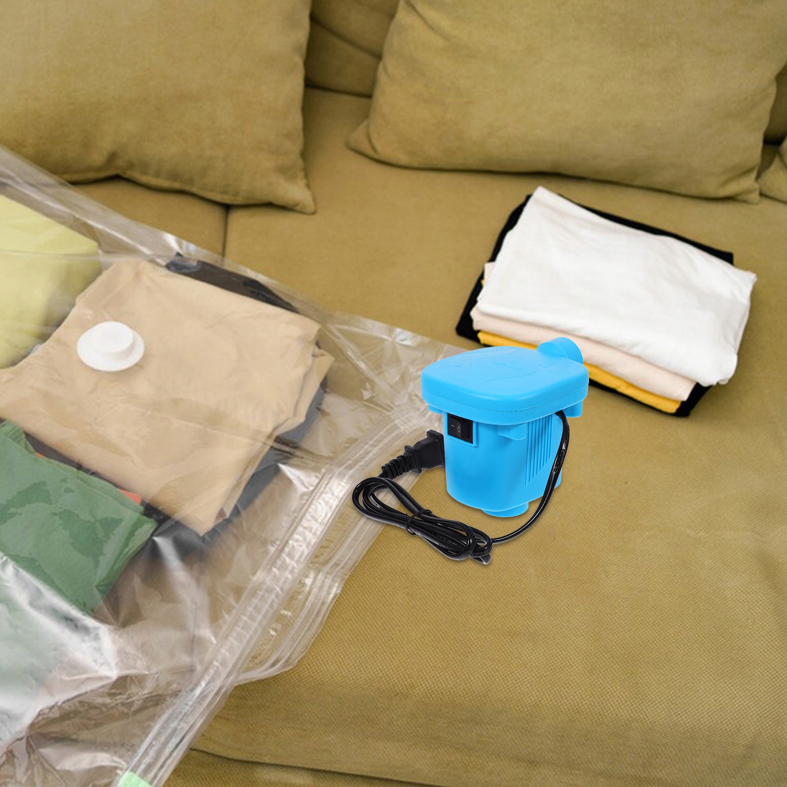 Попрощайтеся з громіздким сховищем і привіт надефективній організації з цим блакитним електричним вакуумним насосом! Спеціально розроблений для використання з компресійними мішками, цей портативний пристрій швидко видаляє повітря з мішків, наповнених одягом, ковдрами чи сезонними речами, заощаджуючи до 80% місця для зберігання за лічені хвилини.