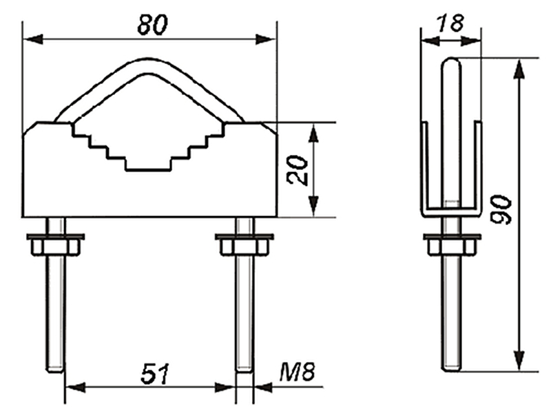 Невеликий кабель M8 / 50cm CYBANT з КЛОРІНКОЮ короткий 1755