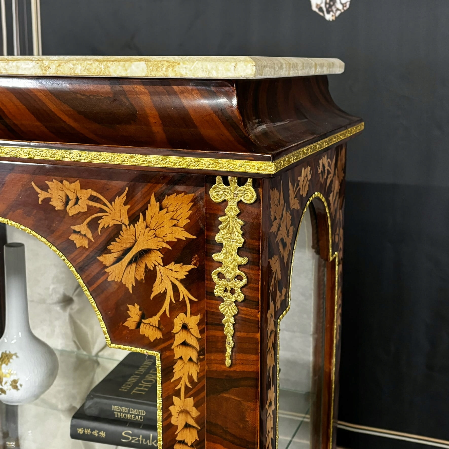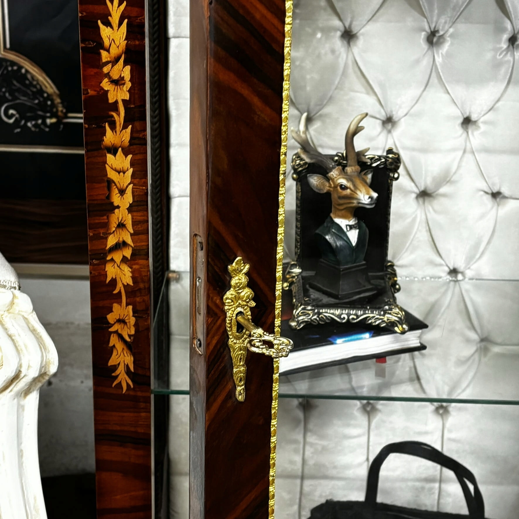 Ось неповторний веб -сайт стилю класицисти , який поєднує елегантність та функціональність. Зроблений з дерева в темному тіні, прикрашеному хитромудрим внутрішньою та позолотою , це чудовий вибір для людей, які шукають розкішні меблі. Глазуровані двері та полиці дозволяють прекрасний показ порцеляни, скла, колекції або прикраси.