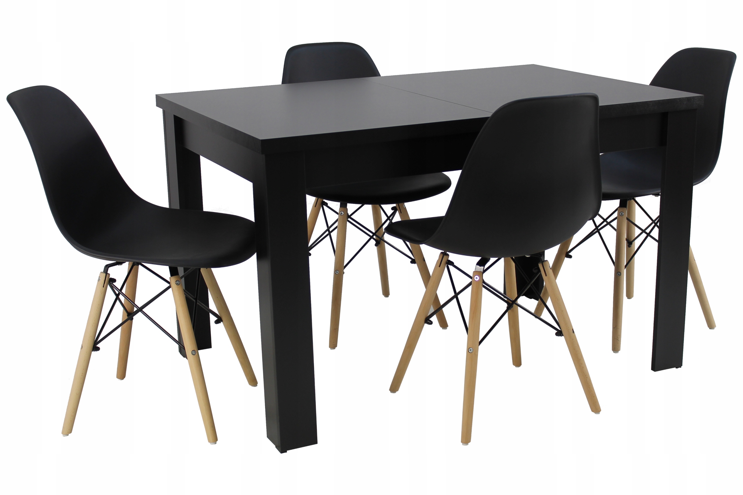 Набір із 4 стільців SL, чорних, букових ніжок і чорного столу C-2