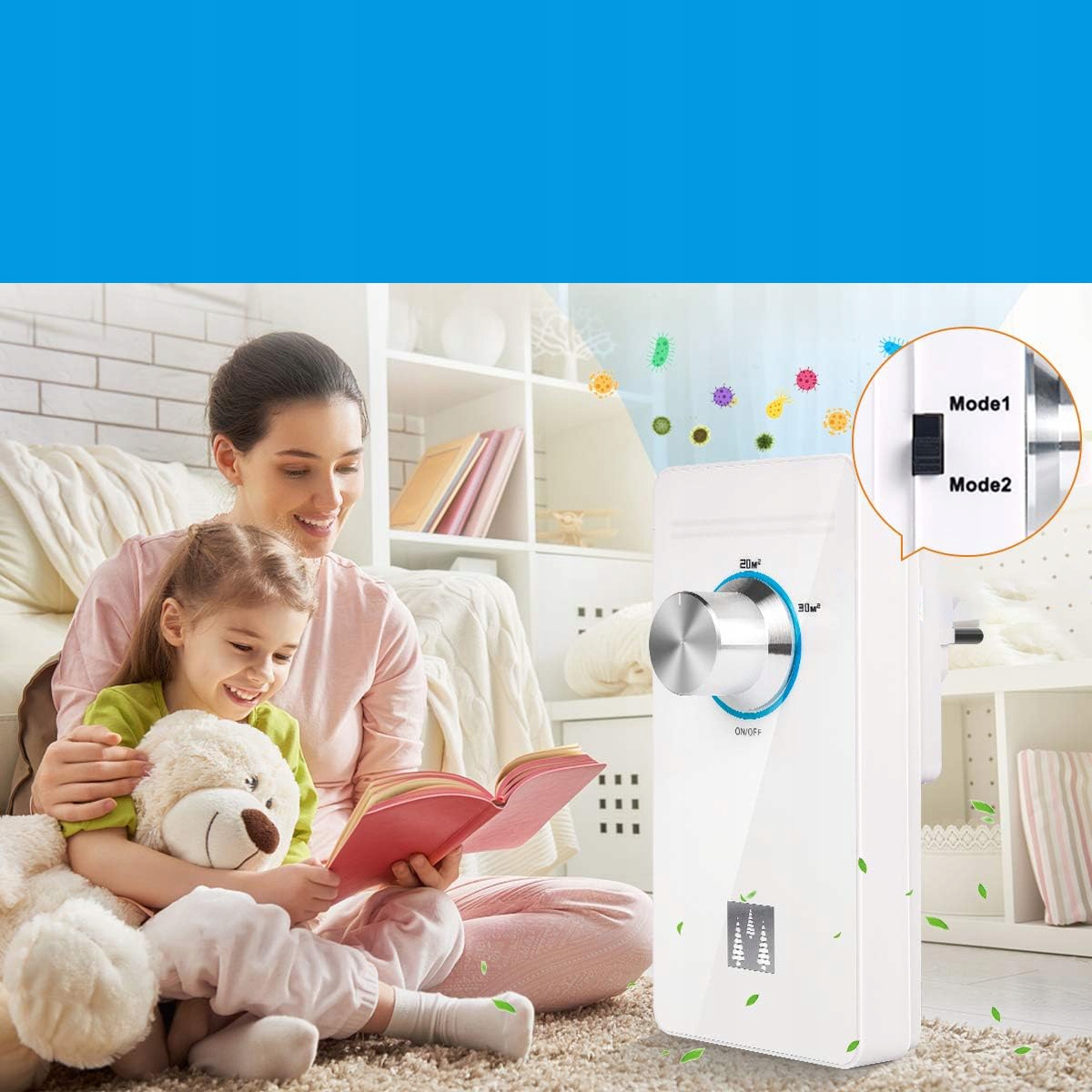 【2 Режими】 Режим 1 Для включення: Індикатор режиму завжди світить зеленим. Через 25 хвилин роботи озону його зупиняють протягом 5 хвилин, а потім процедуру повторюють. Mode2 - Smart Auto Mode: Індикатор режиму завжди світить синім. Озон вимкнеться на 5 хвилин після 25 хвилин роботи, автоматично вимкнеться через 4 години циклічної роботи і знову вмкнеться через 24 години, і весь процес повториться таким чином.