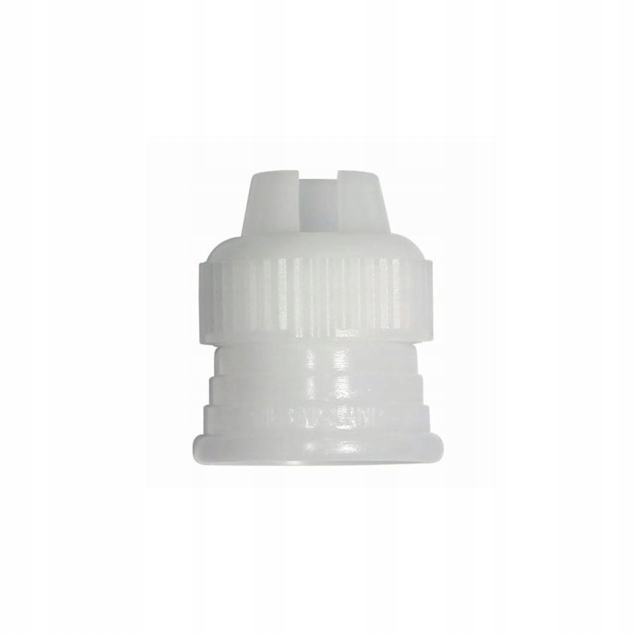Адаптер, встановлений на кондитерському мішку, дозволяє швидко, ефективно та гнучко змінювати різні типи та розміри наконечників. Це практичне рішення дозволяє відразу продовжити декорування другим наконечником з іншим малюнком. Нарізна гайка щільно притягує торець до поверхні муфти, таким чином герметизуючи весь комплект.