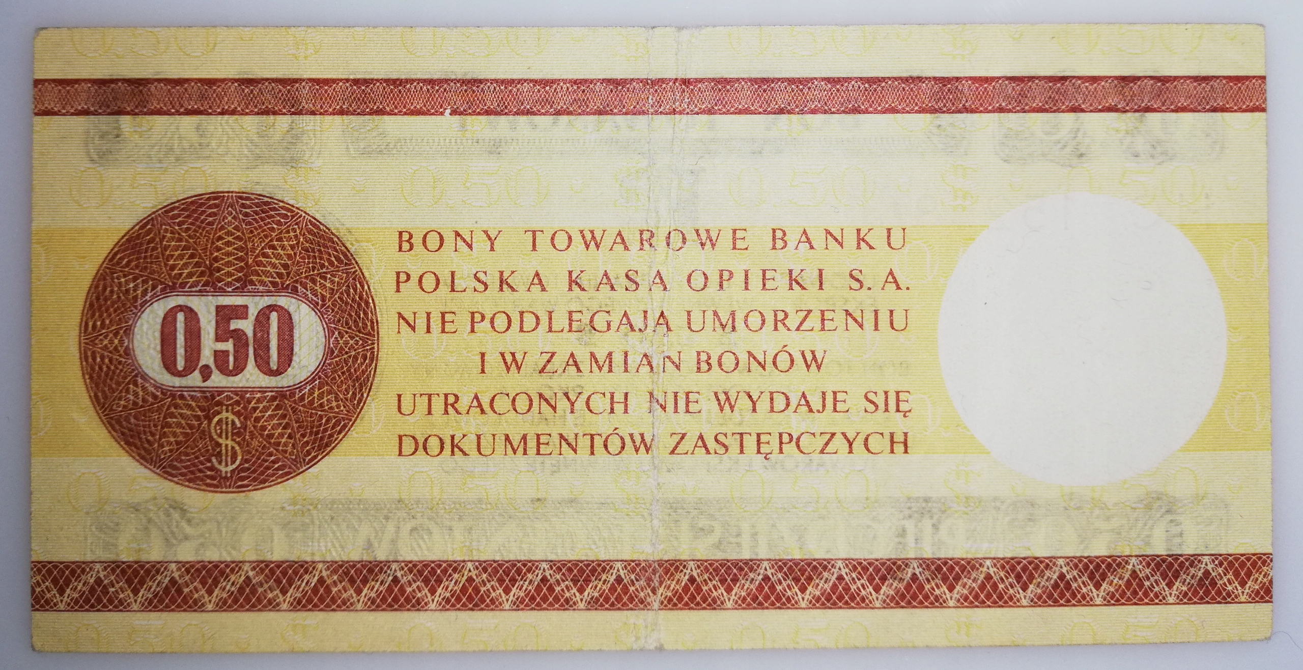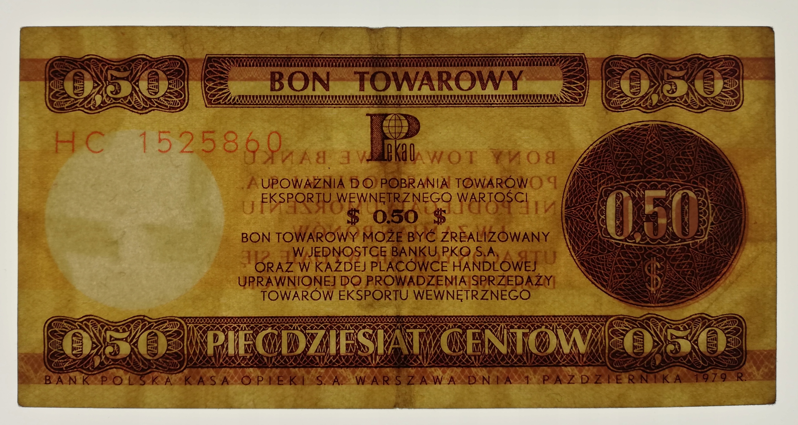 Невеликий рідкісний подарунковий сертифікат серії Pewex HC на 50 центів 1979 року