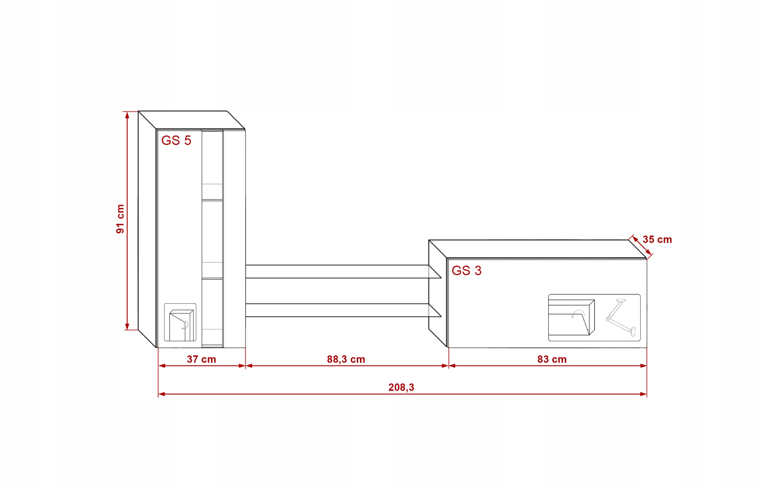 - 1 x GS3 горизонтальна шафа | 83 см (Ш) x 37 см (В) x 35 см (Г)