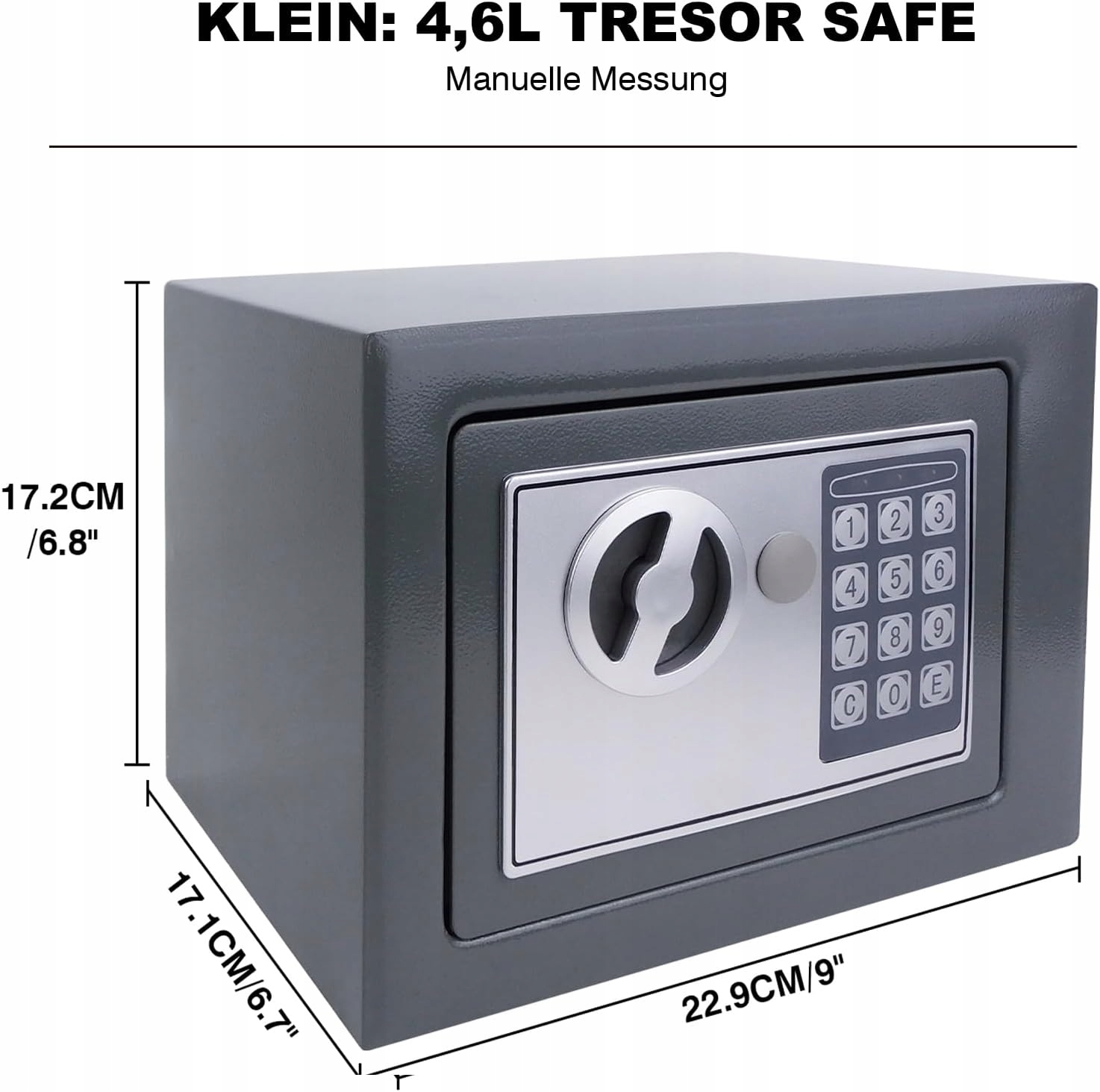 Невеликий електронний сейф з ключем 4,6 л, 23 х 17 х 17 см, сталевий міні-сейф, меблевий сейф з двома ключами для грошей, коштовностей, цінностей, сірий