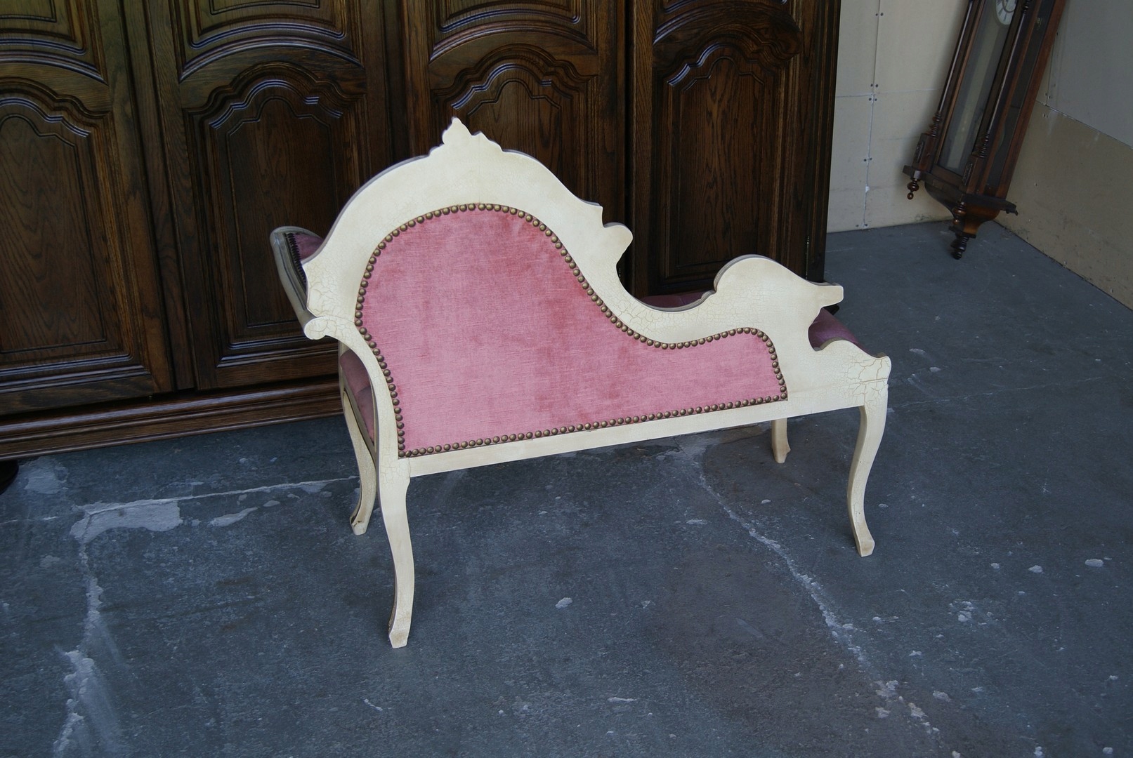 Невеликий шезлонг, вибілена деревина, стьобана в рожевому - 100 см завдовжки