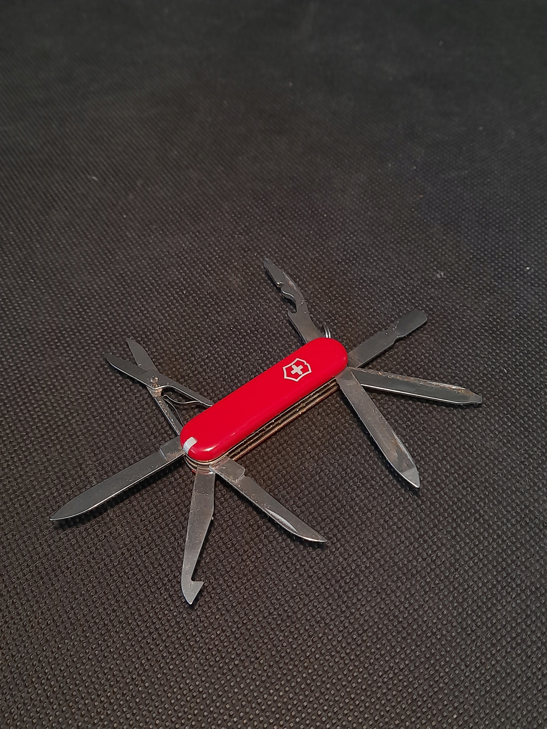 Вікторінокс мідії на продаж. Дуже хороший стан, бруд видимий в деяких місцях. Немає дефектів. Леза, виготовлені з нержавіючої сталі.