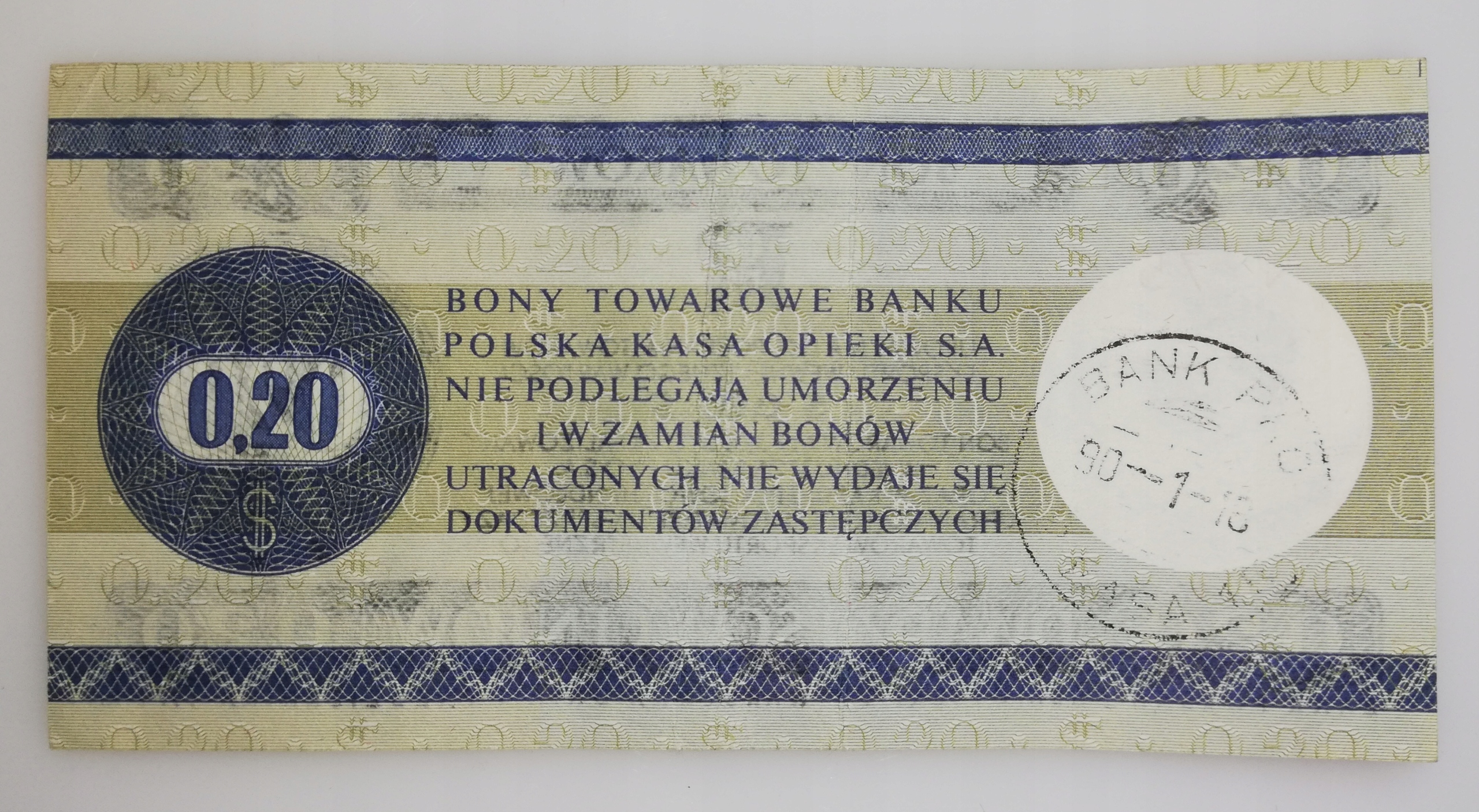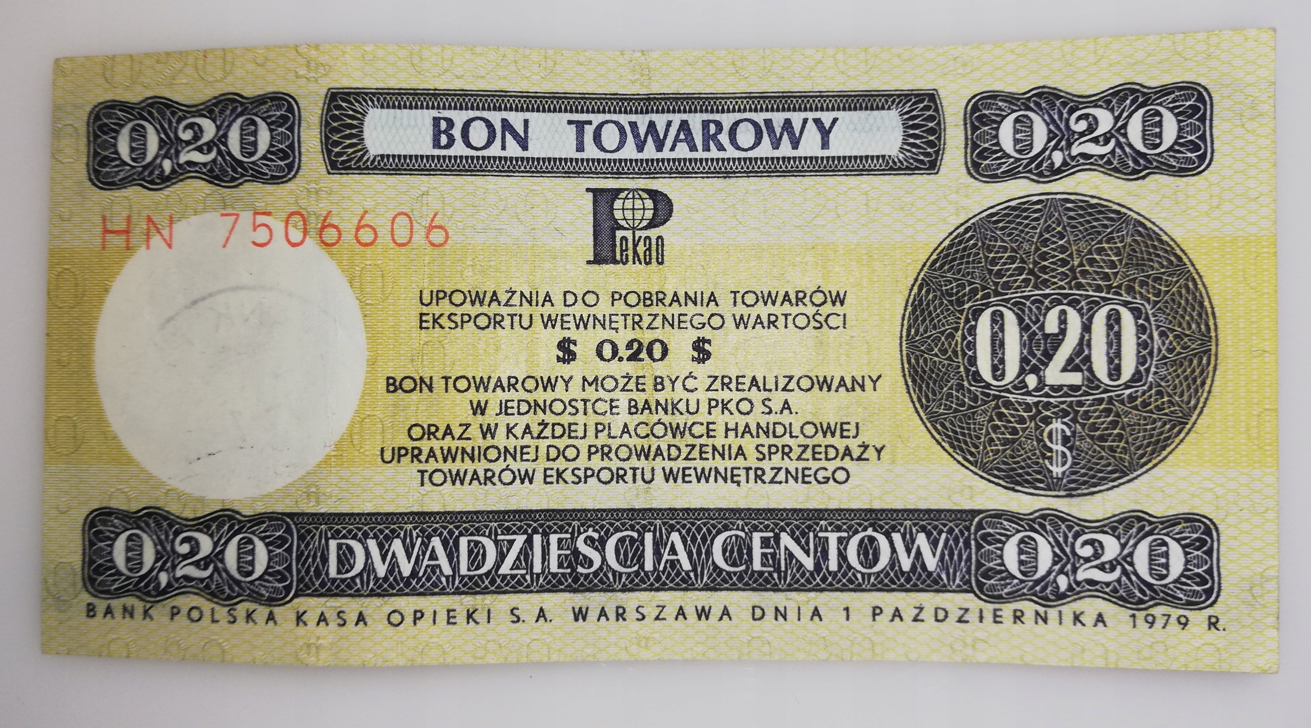 Невеликий ваучер на 20 центів 1979 року Pewex серії HN