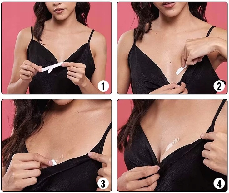 Невидима подвійна стрічка для одягу -ідеальне рішення для людей, які хочуть тримати одяг на місці без використання шпильок чи інших видимих ​​аксесуарів. Стрічка забезпечує стримане та певне кріплення, ідеально підходить для суконь, блузок, декольте або інших предметів гардеробу.