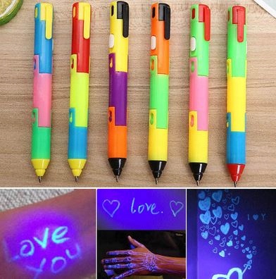 Ручка має чорнило, видиме лише під ультрафіолетовим світлом . Фломастер має вбудовану лампу за ультрафіолетовим світлом!