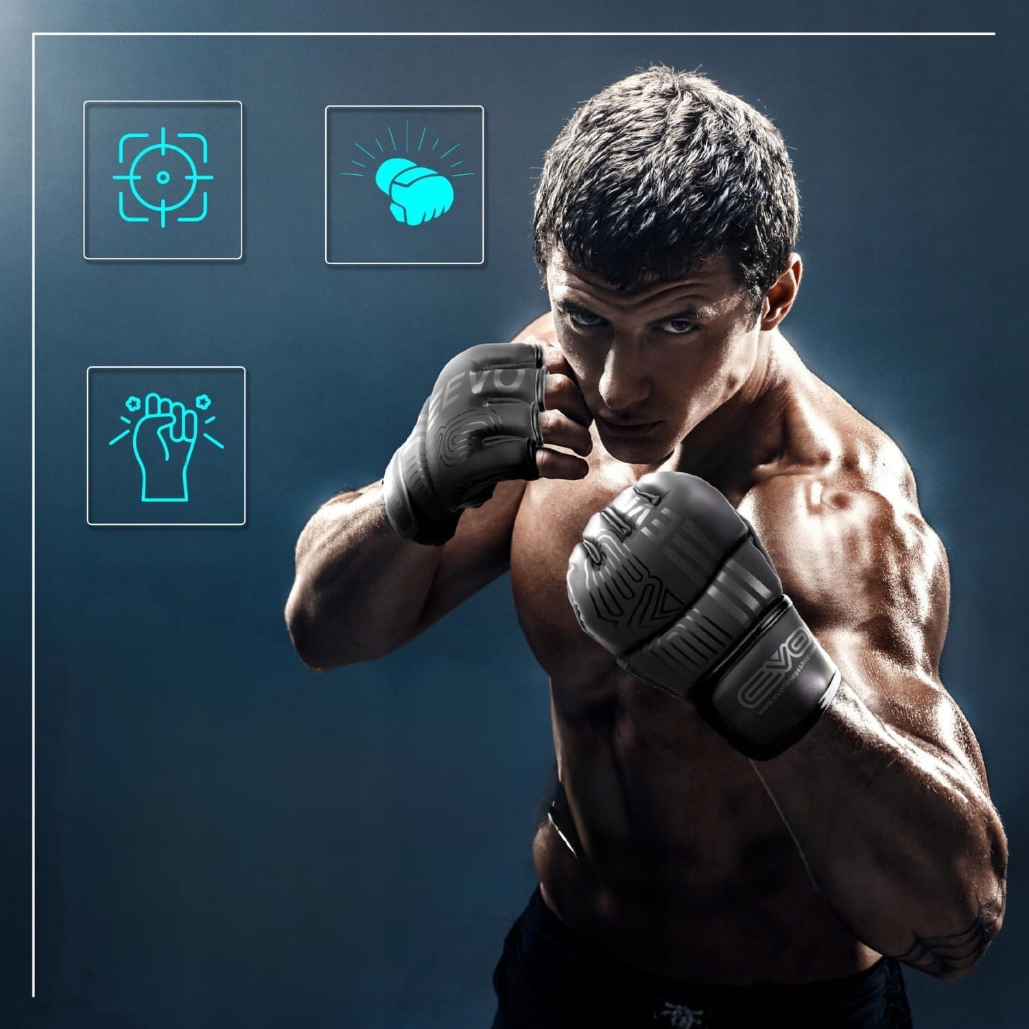 Сучасні рукавички EVO Fitness MMA поєднують стиль, захист і довговічність, створюючи надійне обладнання для тренувань бойових мистецтв.