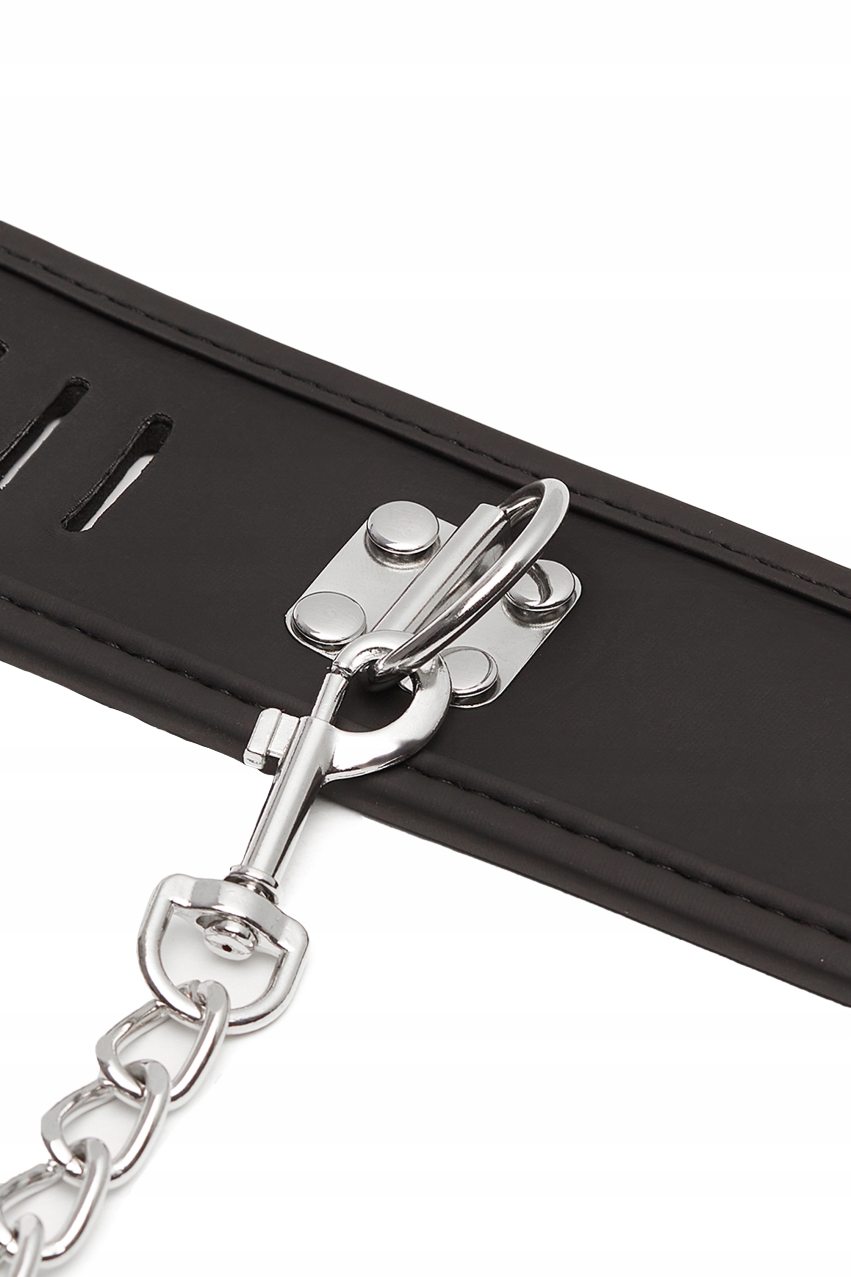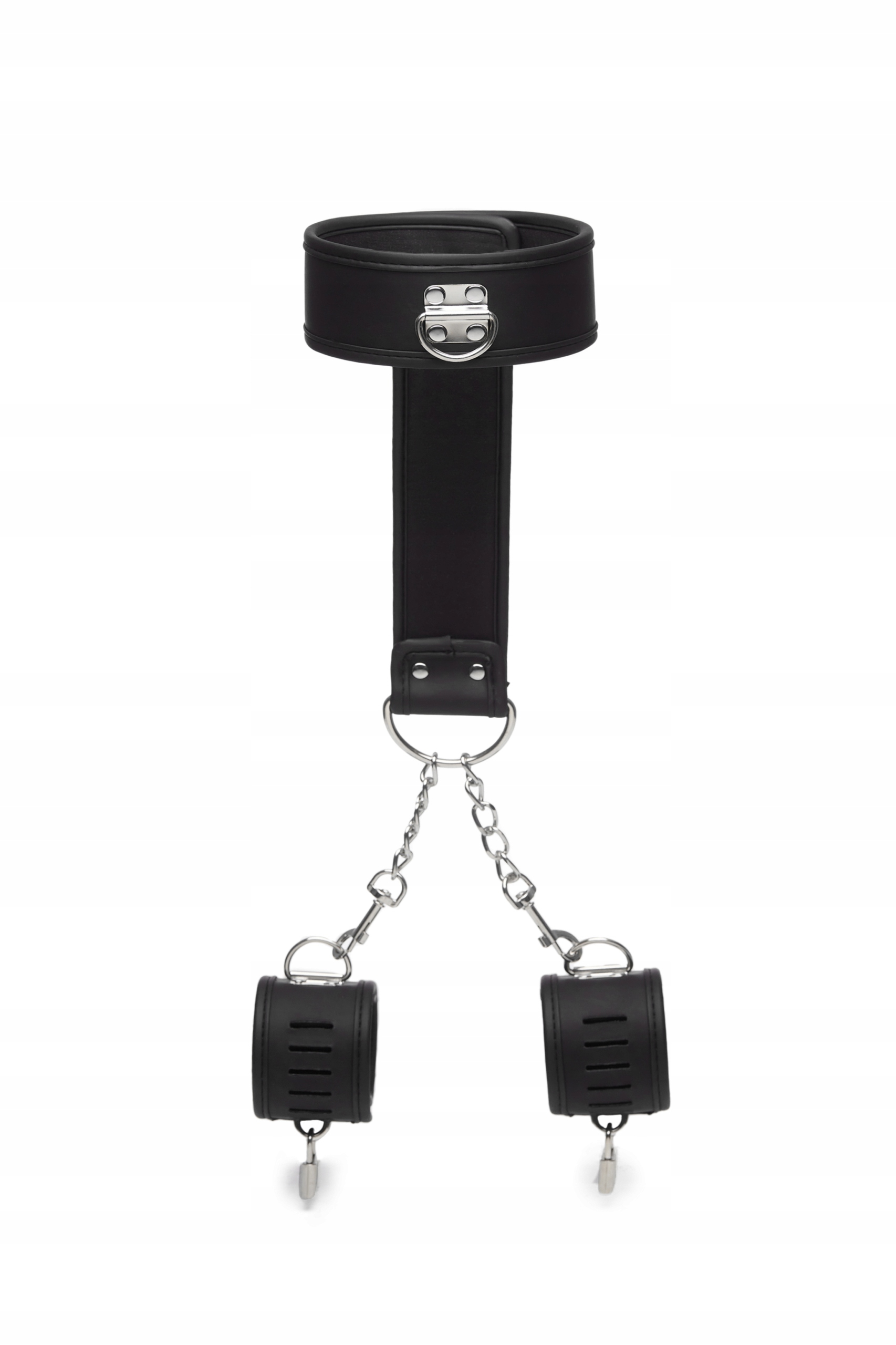 Бондаж-набір для бондажу під час еротичних ігор складається з коміра та наручників, виготовлених з міцних ременів. Комір кріпиться до манжетів за допомогою планки, розмір манжетів регулюється для комфортної посадки. Ремені мають м’яку, гнучку структуру і не залишають слідів на тілі.