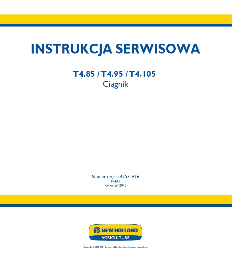 NEW HOLLAND T4.85 T4.95 T4.105 instrukcja napraw po Polsku