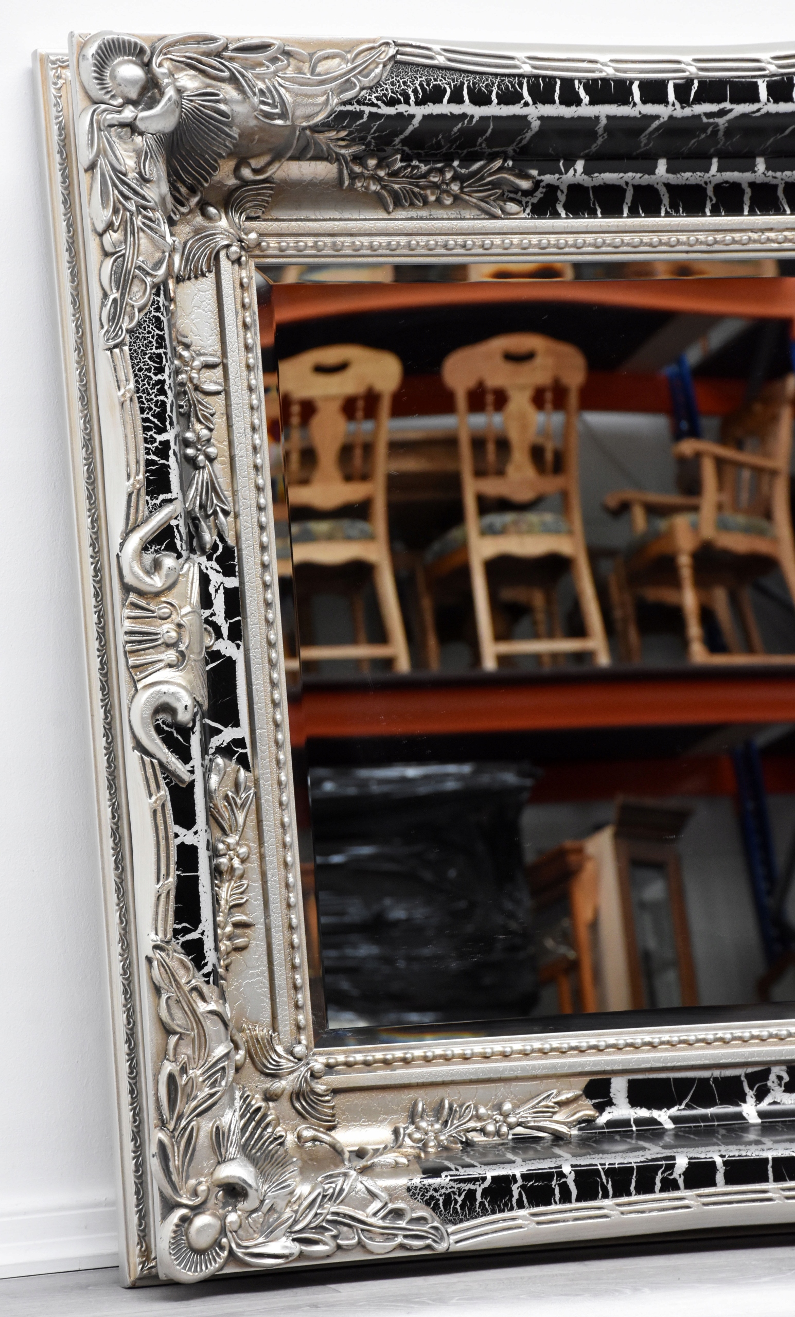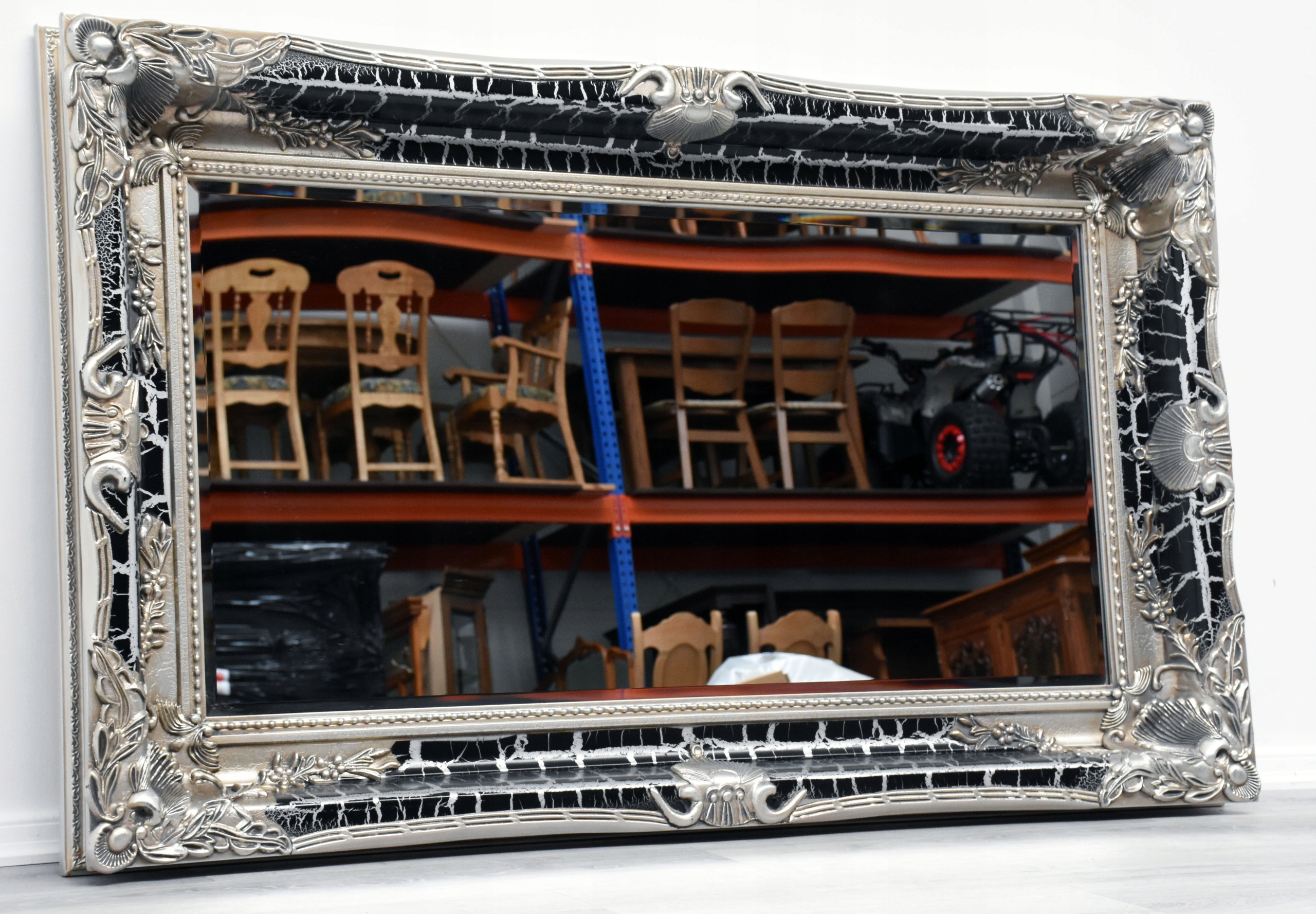NEW PALACE СРІБНЕ ДЗЕРКАЛО, ДЕКОРАТИВНА ТОВА РІЗЬБЛЕНА РАМА 90x150см