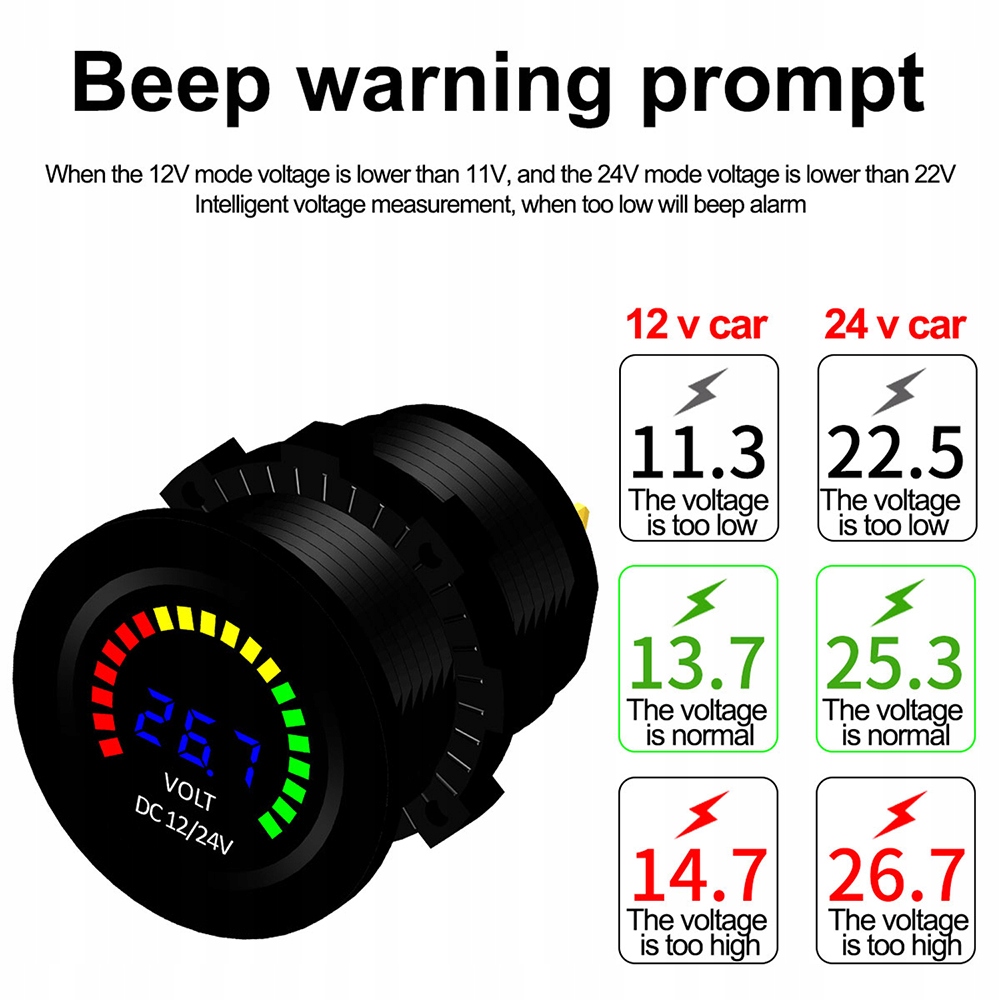 1. Легкий для ідентифікації статусу акумулятора світлодіодного акумулятора 12/24 V Система автоматичного виявлення (сумісна з двома системами) 3 дисплей у світлодіодній панелі, читання в секундах, більш інтуїтивно зрозумілі, швидкі та комфортні.