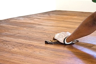 Завжди робіть пробний колір, щоб визначити відповідність тіні з очікуваннями. Пляма, нанесіть на дерев’яне зерно прямо на сиру деревину з плоскою щіткою, валиком з короткими щетиною, фланелевим тампоном або душем. Висушування при нижчій температурі не викликає негативних наслідків, а лише розширює час сушіння.