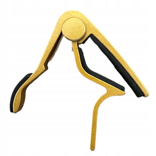 Капода для акустичної гітари, золото/жовтий. Виготовлений з легкого алюмінію для швидкої зміни тембру гітари, елегантності та зручності в експлуатації. Силіконова накладка захищає гітару та струни, передає вібрацію та забезпечує чудовий звук. Оснащений пружиною з пам'яттю, яка рівномірно розподіляє тиск на кожну струну, зберігаючи гітару в хорошому настрої. Однією рукою можна швидко і легко змінити положення капо на ладах. Капо залишається настроєним, зберігаючи ідеальну інтонацію в усіх позиціях.