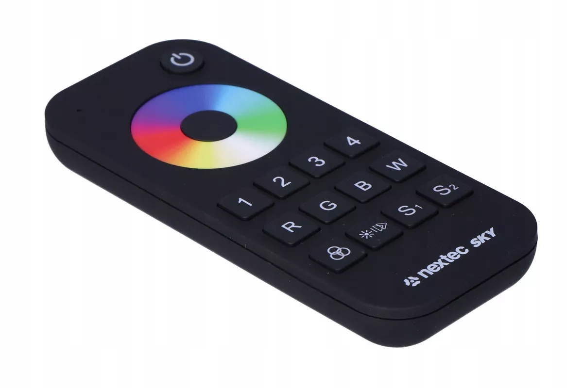Модель: Sky RGB/RGBW Виробник: Nextec Тип пристрою: пульт дистанційного керування Кількість зон: 4 Сумісність: світлодіодне освітлення RGB та RGBW Діапазон: до 30 метрів Блок живлення: акумулятор (тип залежно від моделі, наприклад, AAA)