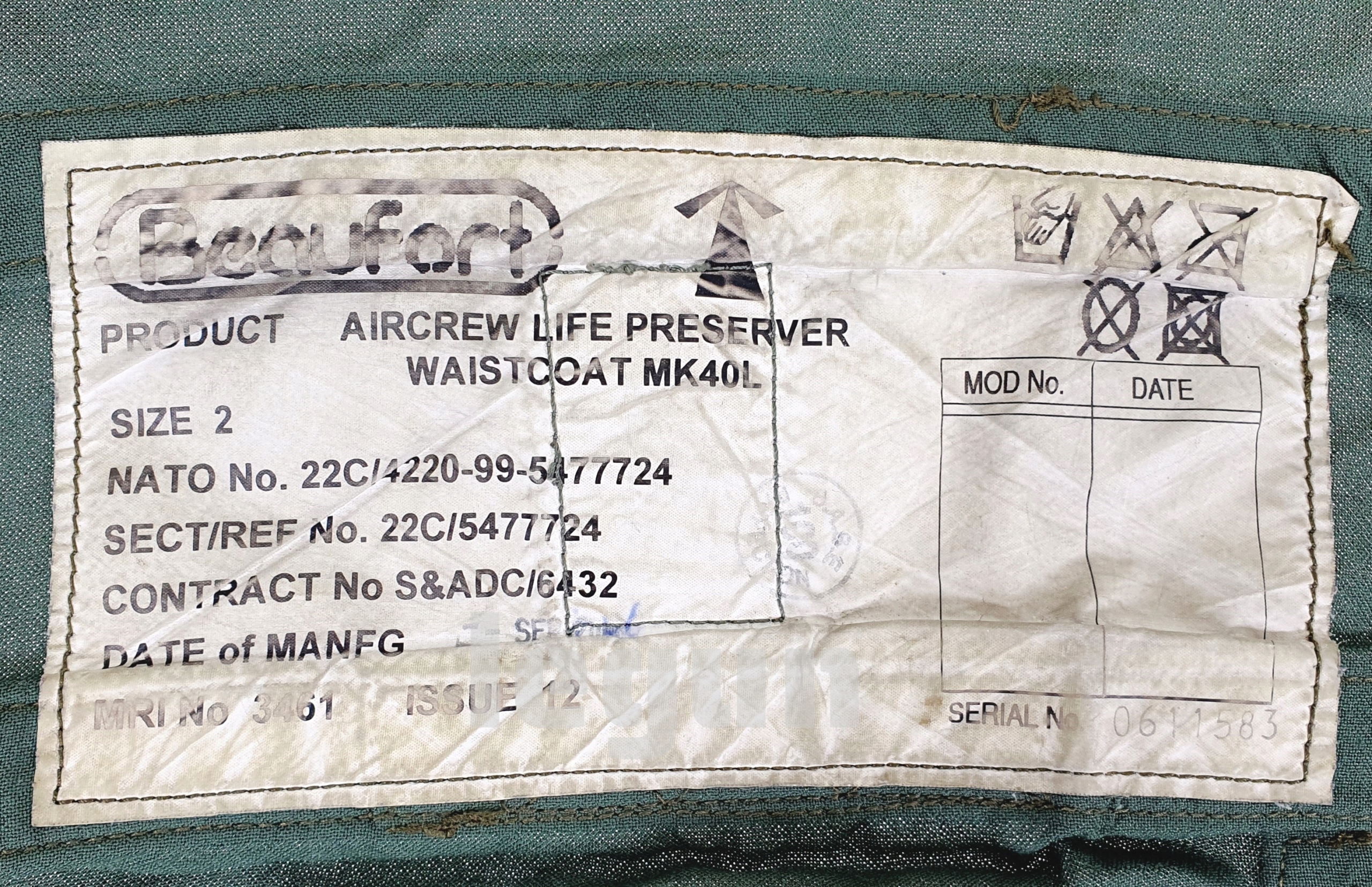 BEAUFORT Aircrew Survival Life Pilot Vest MK40L RAF British Army Aircraft ANTI-G