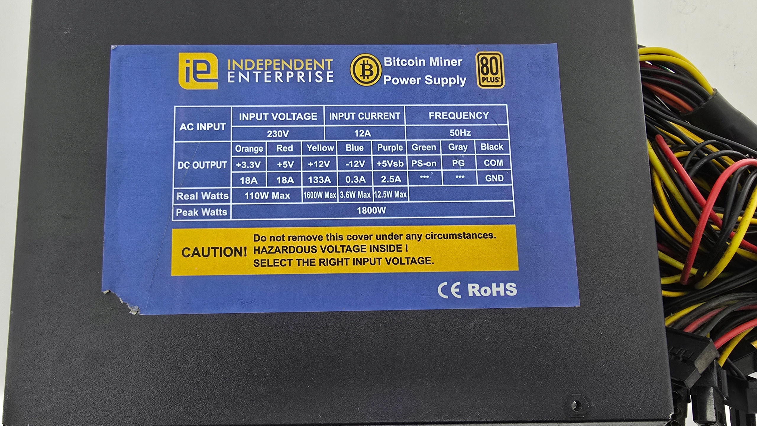 Незалежне підприємство 1800 Вт живлення ATX для екскаваторів криптовалют 80+ 140 мм
