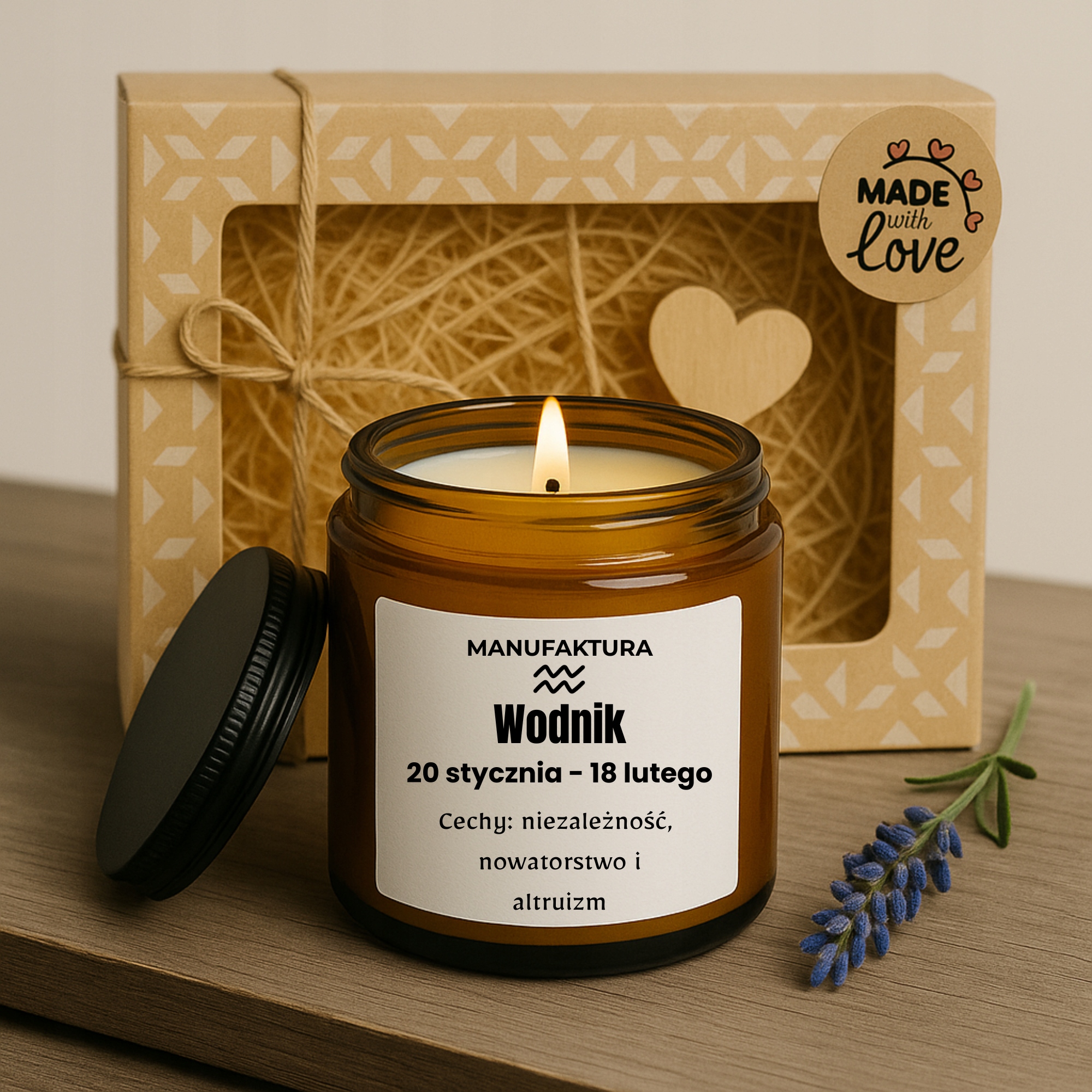 Ви хочете дати комусь під знаком Водолія з чимось особливим? Наша соєва свічка з персоналізованою етикеткою "Водолій" поєднує в собі природні інгредієнти з магічним астрологічним акцентом. Запаліть його, щоб заповнити інтер’єр надихаючою аурою незалежності та інновацій - особливості, які найкраще характеризують справжній Водолій!