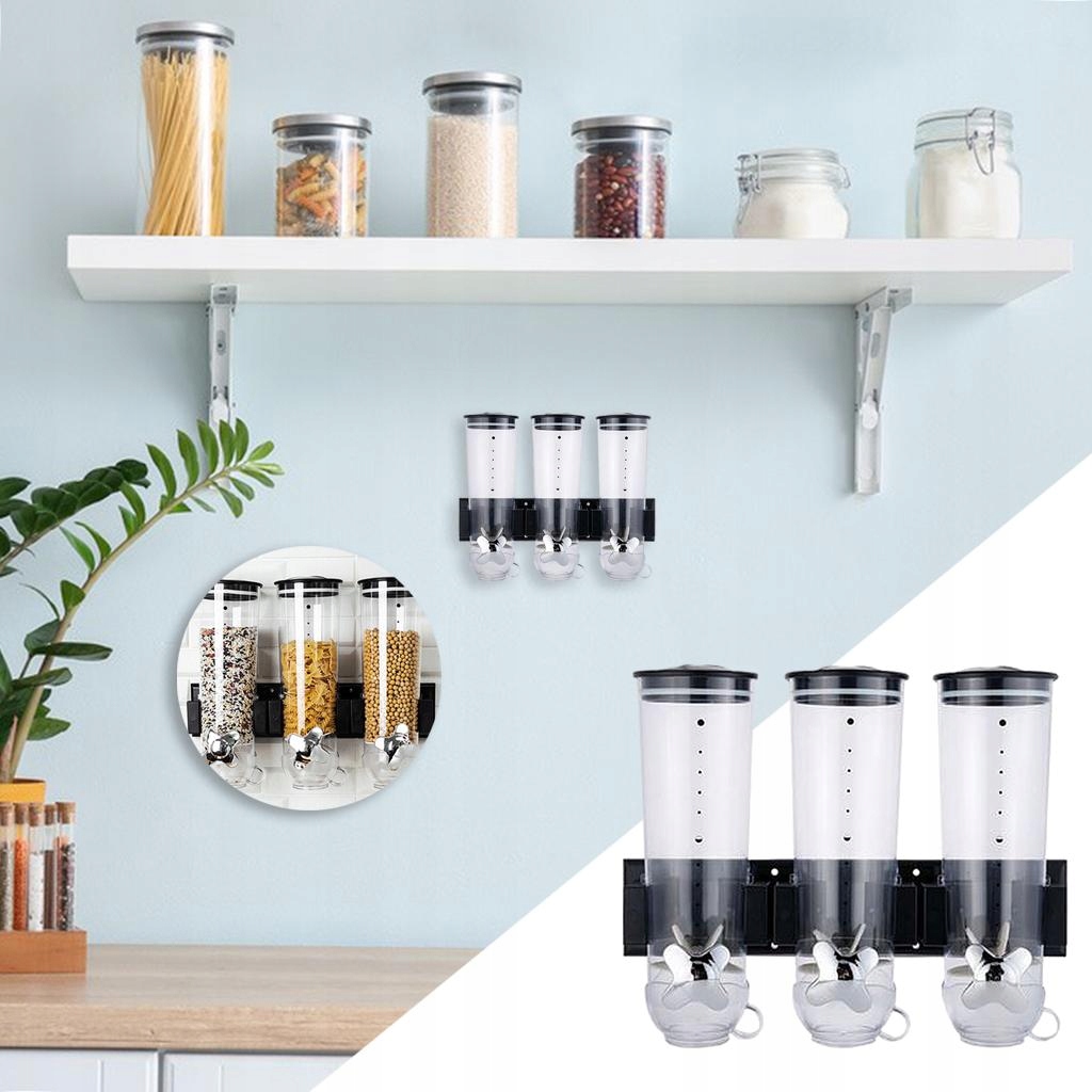 Настінний диспенсер для сухих кормів Кухня для зберігання пластівців, вівсяних пластівців, потрійний чорний