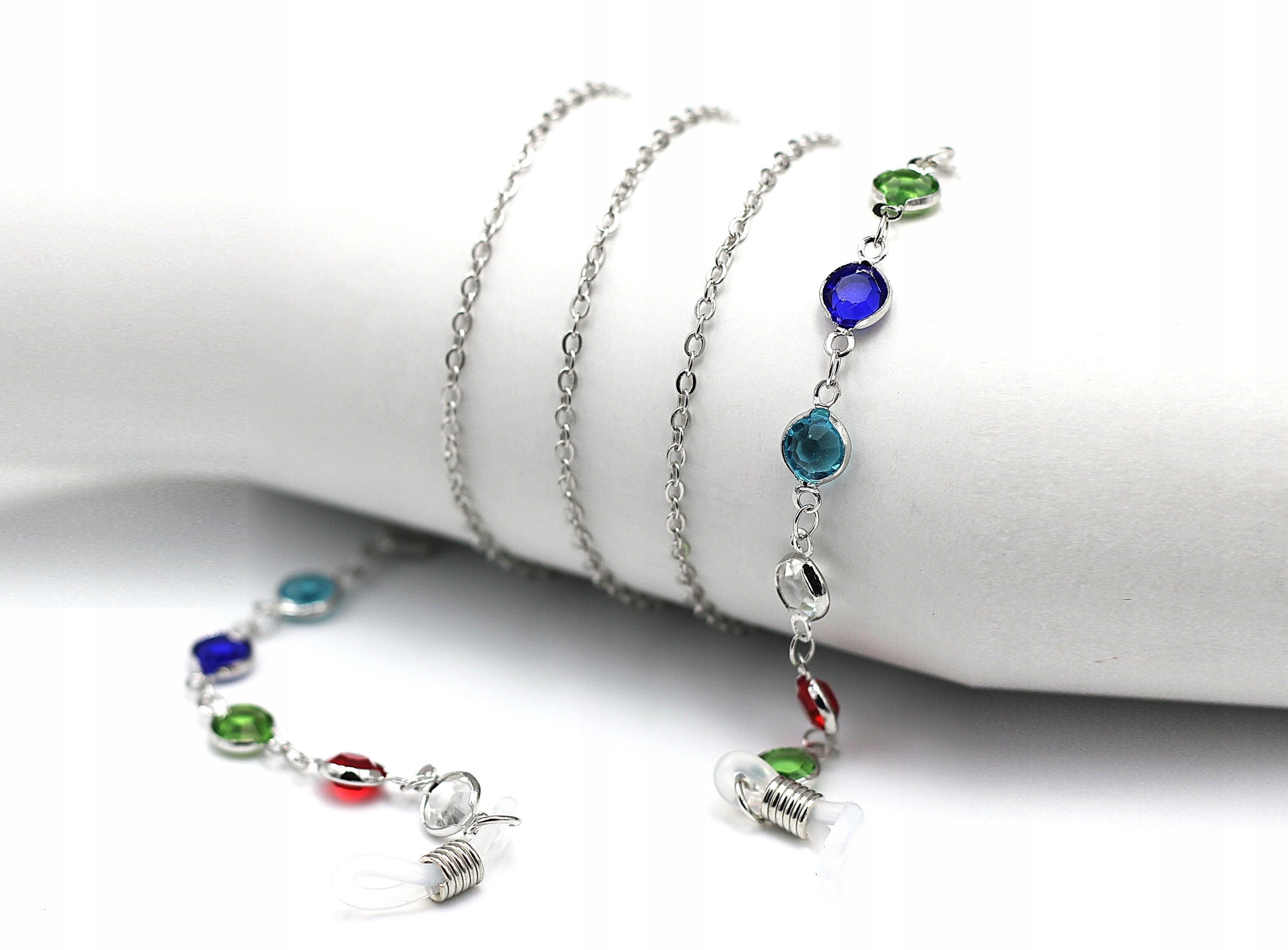 стильний ланцюг з підвіскою для сонцезахисних окулярів, оптичних та комп'ютерних. Ця унікальна прикраса не тільки захистить окуляри від падіння, але й додасть трохи гламуру будь -якого стилю. Завдяки ланцюгу, ви можете насолоджуватися комфортом носити окуляри на шиї, не боячись їх втратити. Гумові затискачі на кінцях ланцюга полегшують її установку на башках. Матеріал срібла