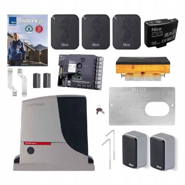 Набір Nice Robus 500HS-це готовий набір автоматизації у високошвидкісній версії з аксесуарами, призначеними для розсувних воріт вагою до 500 кг і до 8 м завдовжки.