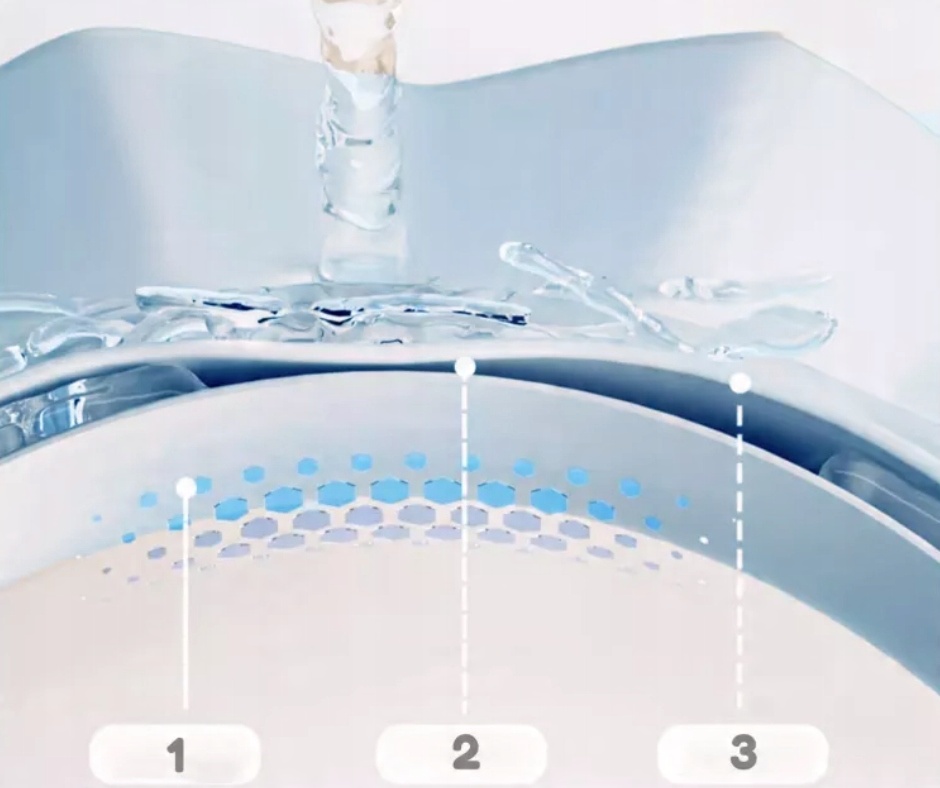 - Використання запатентованої повітряної подушки зменшує тиск води під час ополіскування голови, тому краєчок не ковзає і вся вода тече назад