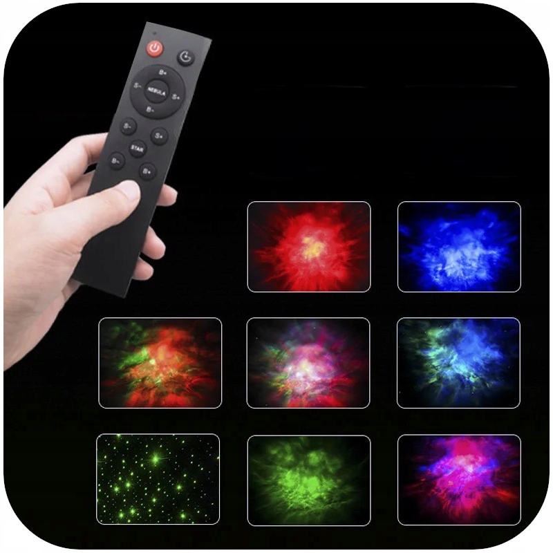 ❇️ Пульт дистанційного керування: продукт має пульт дистанційного керування, який дозволяє зручно керувати на відстані, зокрема змінювати режими проекції , регулюючи яскравість і швидкість обертання без необхідності підніматися.
