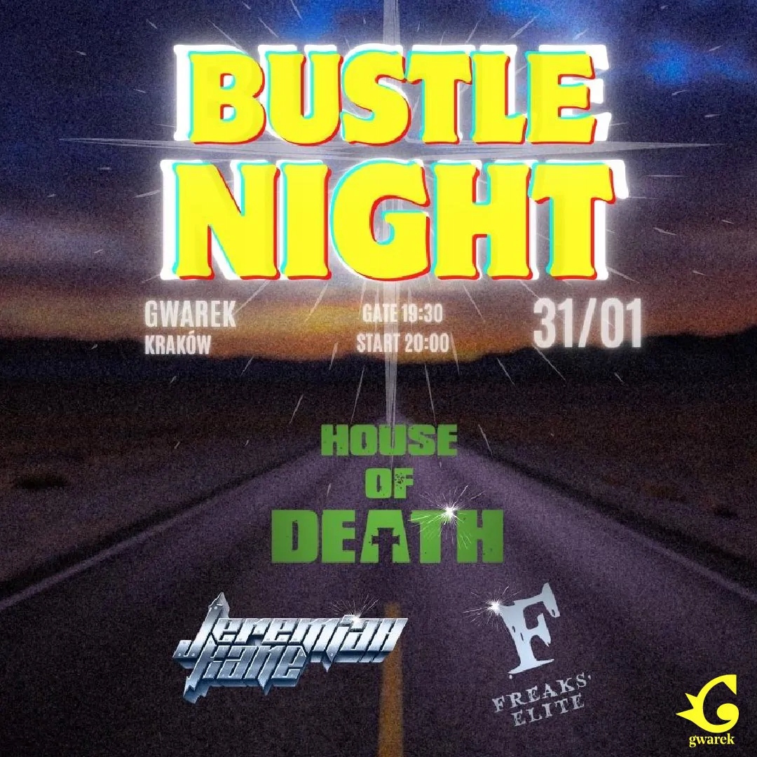 Запрошуємо на Bustle Night: House of Death, Jeremiah Kane, Freaks'Elite - квитки на концерт у Кракові вже у продажу. Інформація про будинок смерті House of Death — важкий рок-гурт із Голенюва поблизу Щецина, заснований у березні 2019 року. Гурт складається зі злагодженого квінтету унікальних музикантів, об’єднаних любов’ю до чистої, нестримної рок-музики. Хард-рок-машину очолює харизматичний Хуан Карлос Кано з Мексики, а доповнюють склад гітаристи Ярек Чілкевич з групи Пьотра Куговського та Адам Бєльчук з Anti Tank Nun. Лідер легендарного Quo Vadis Томаш «Skaya» Скуза грає на бас-гітарі. «Машиною для створення грому» керує унікальний Szymon «Sajmon» Synówka (My Riot). House of Death — це надзвичайна суміш енергії, стилю та нестримної сили, результатом чого є чистий, потужний, сирий та безкомпромісний хард-рок. Творчість гурту, насичена гітарними рифами, басовими партіями та динамічними ритмами барабанів у поєднанні з голосом харизматичного співака, здатна зворушити будь-яку аудиторію. House of Death – гурт, який не боїться експериментувати зі звуком, привносячи в жанр свіжий підхід і нове звучання. «Концерти House Of Death — це свято Року в чистому вигляді, еманація звукової потужності звучання гітар, барабанів і голосу. Тому їх не можна пропускати. Давайте рок!» Лешек Гноїнський Склад команди: Adam Bielczuk Anti Tank Nun (1 серій) Шимон Синівка (Quo Vadis, MyRiot) Ярек Чилкевич (Кася Ковальська, Брача та Пьотр Куговський) Томаш «Ская» Скуза (Quo Vadis) Хуан Карлос Кано (Додати) (переможець «Голосу Польщі») Інформація про Джеремію Кейна Jeremiah Kane, група з Познані, поєднує глем-метал із синтетичним звучанням з 2017 року. Вони випустили три альбоми, EP та багато синглів. Їх підтримують DR Strings і Ajinomoto, вони виступали по всій Європі, включаючи такі фестивалі, як Castle Party і Pyrkon. Вони зібрали понад 9 мільйонів переглядів на Spotify і створили саундтреки до ігор. Коротка версія їхньої біографії описує їх як «машину часу», яка малює з 1980-х років. Інформація Freaks'Elite Freaks'Elite - Вже не наймолодший, але все ще не дуже розумний і завжди жадає чогось більшого. Freaks'Elite жменями бере гімни 80-х і додає дрібку сучасності, створюючи смертоносну суміш - глемкор. Важкі рифи та приспіви, які не виходять з голови найближчим часом - це їхня особливість.