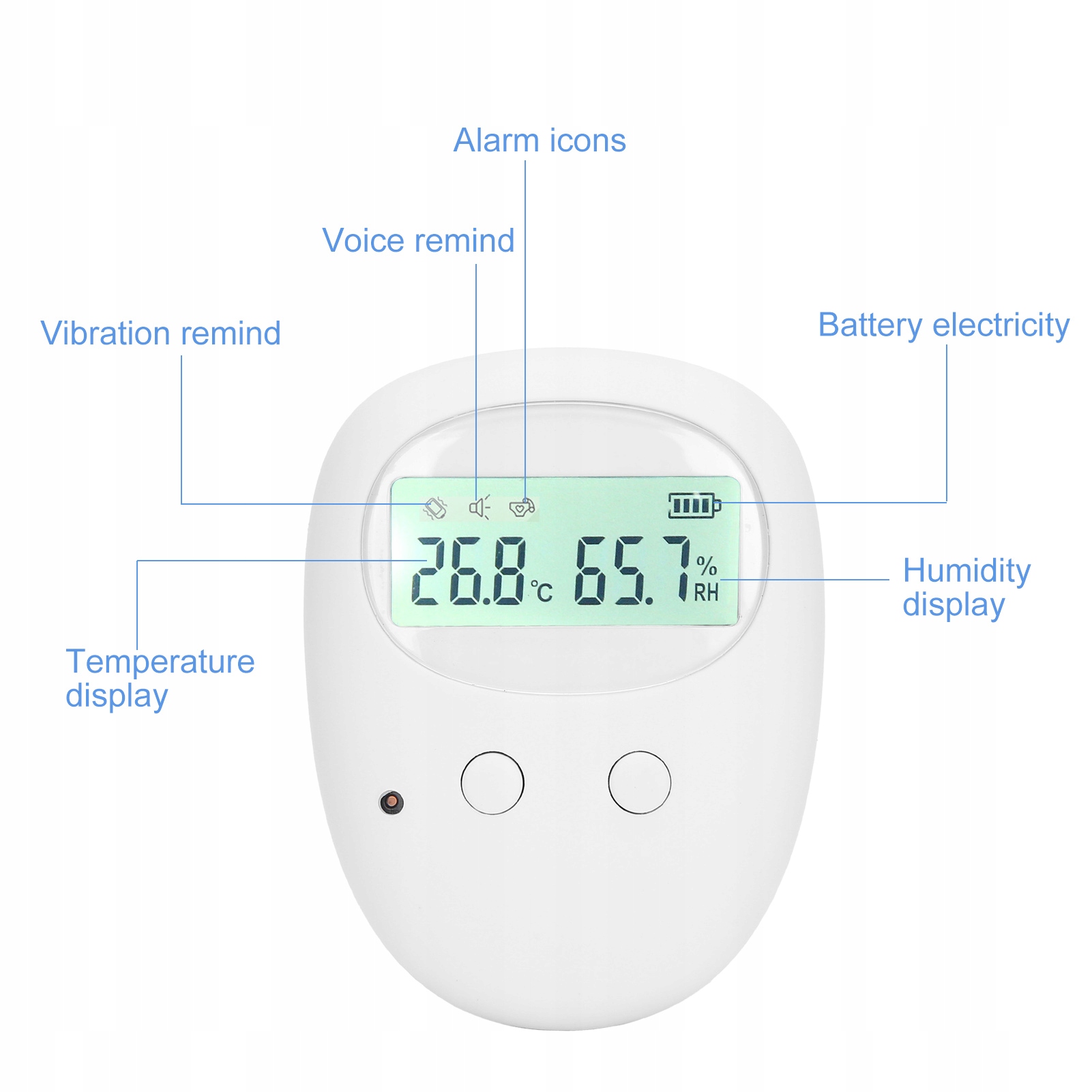 приймач: приймач використовується для отримання інформації про тривогу від передавача та сповіщення користувача через вібрації або звуку. Він має функцію визначення температури та вологості та використовується для визначення температури та вологості в поточному середовищі.